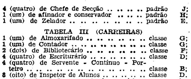"Tabela III (Carreiras) - 1 (um) de Almoxarifado ... classe G;..."