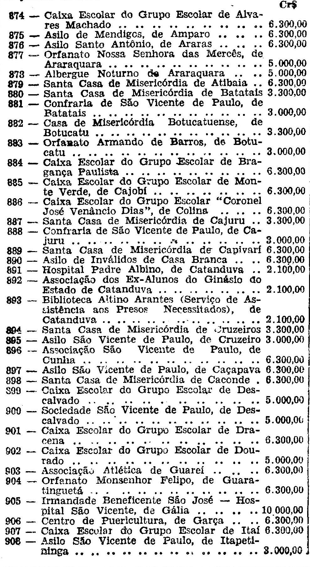 Dá nova redação nos itens ns. 874 a 954 do artigo 1.° da Lei n. 955, de 27 de janeiro de 1951.