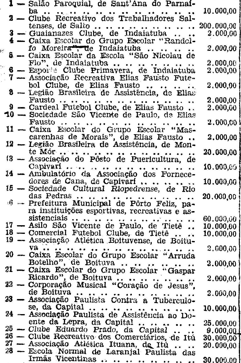 Artigo 1.º - São concedidos no corrente exercício, às entidades abaixo relacionadas, os seguintes auxílios: