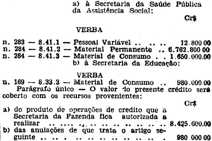 Secretaria da Fazenda, um crédito de Cr$ .. 9.405.600,00 (nove