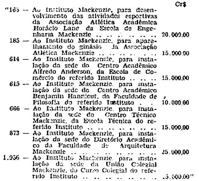 os itens 165, 185, 614, 615, 666, 873 e 1.956 do artigo 1.º da Lei