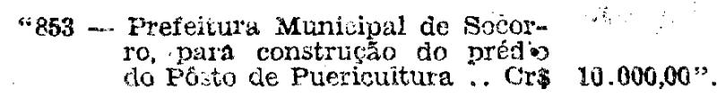 Artigo 1.º - Passa a vigorar com a redação abaixo o Item 853 do artigo 1.º da Lei n. 615, de 30 de dezembro de 1949: