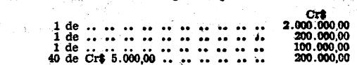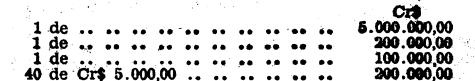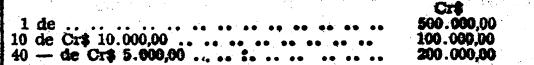 Cr$ 500.00 (quinhentos cruzeiros) cada uma, numeradas seguidamente.