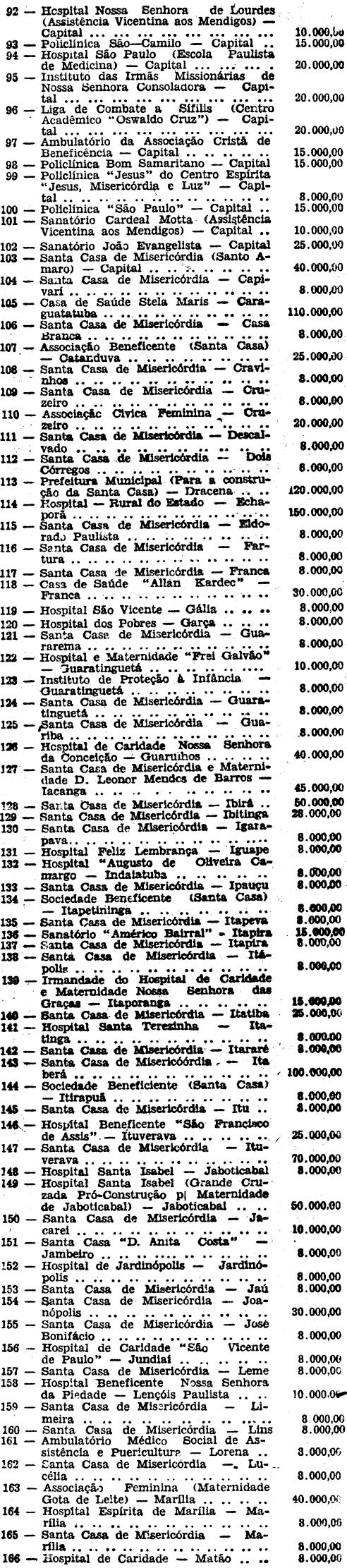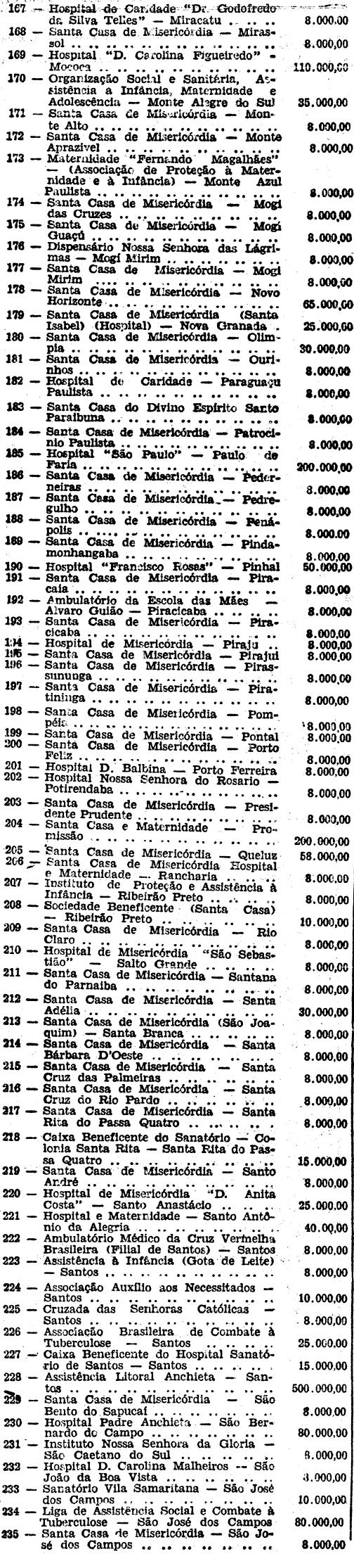No artigo 1.º, item 167, onde se lê: "Hospital de Caridade