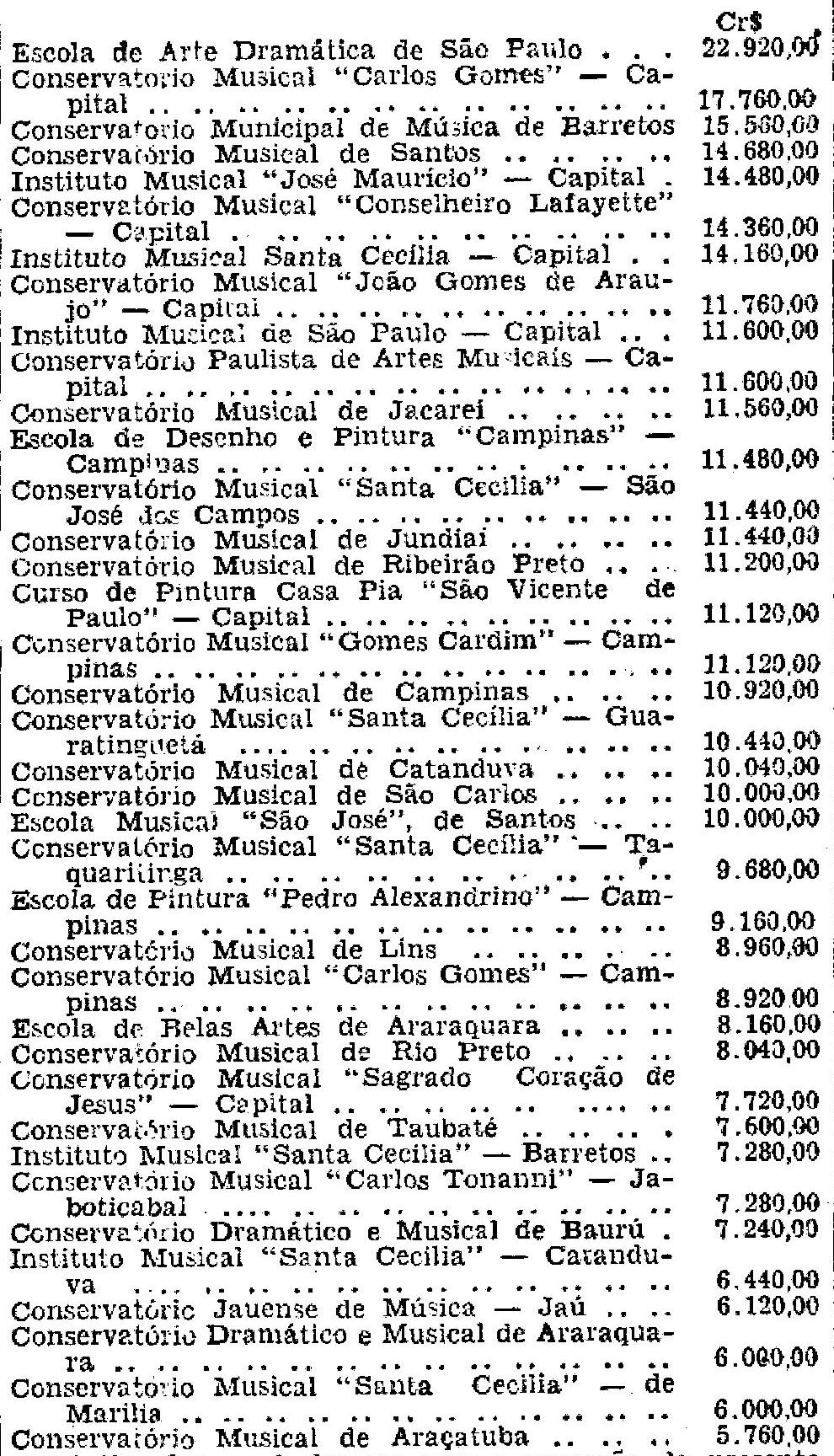 Dispõe sôbre concessão de subvenções a estabelecimentos de ensino artístico,