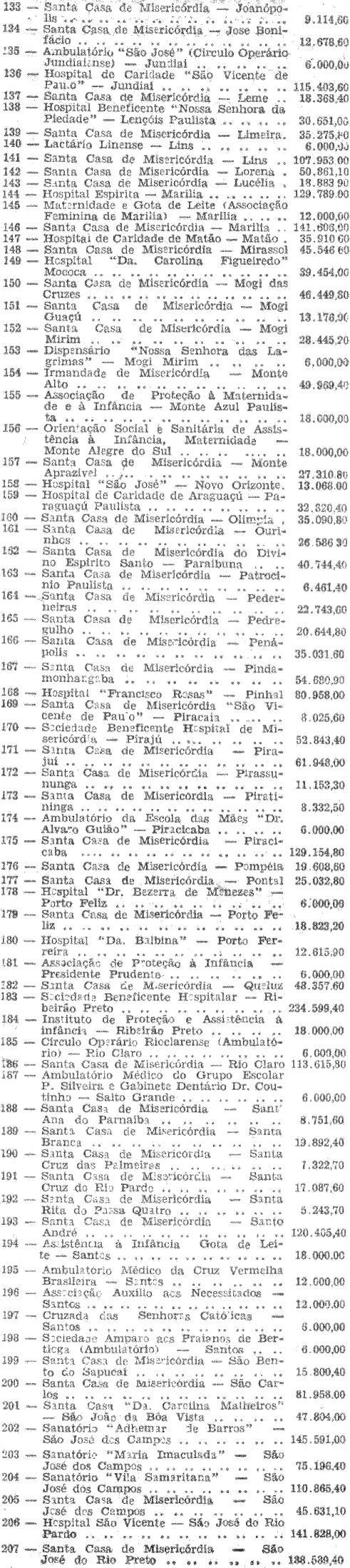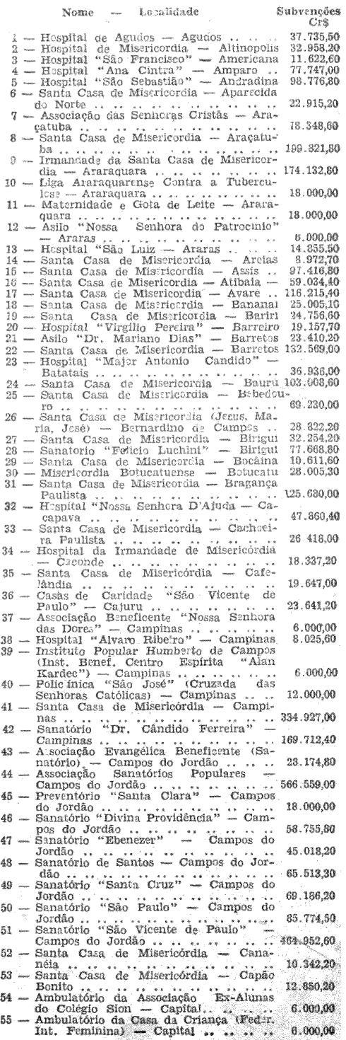 corrente exercício, as seguintes subvenções por "leito-dia" e "quotas