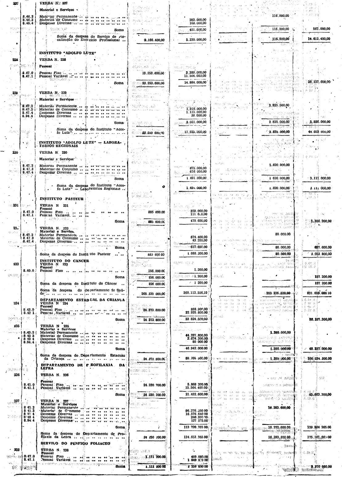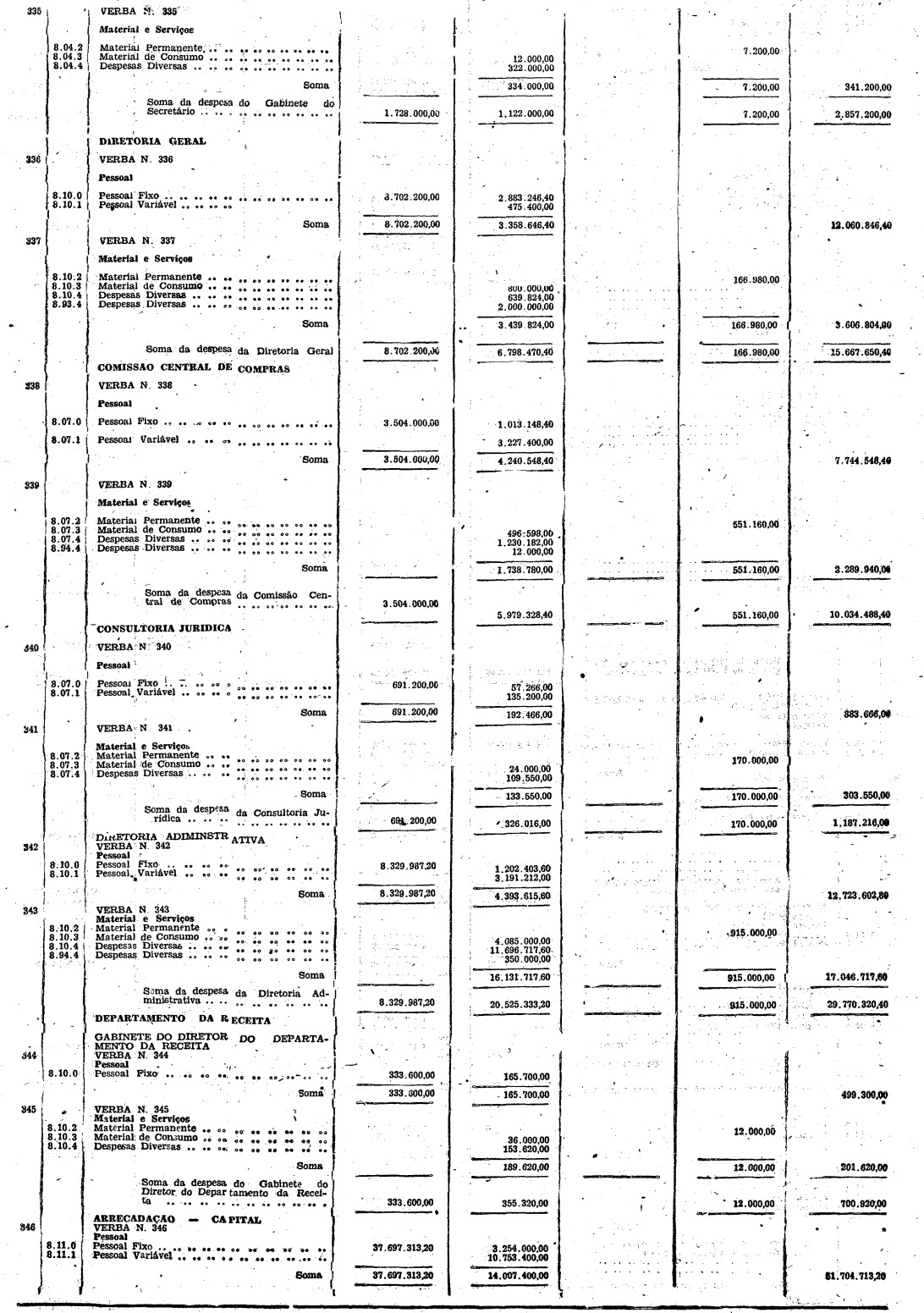 receitas que lhe são próprias consignadas na verba n.º 327, nos têrmos da Lei