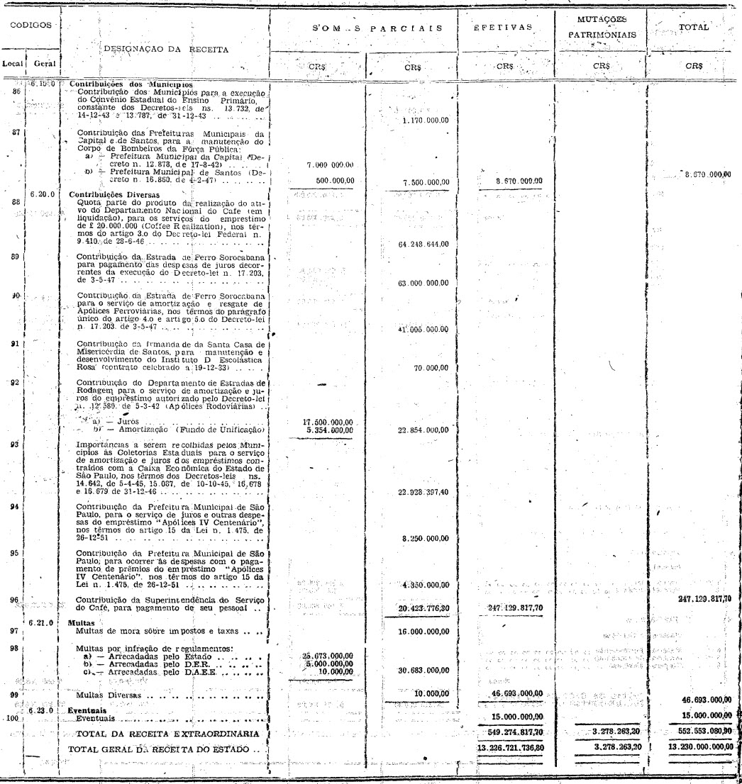 Orça a Receita e fixa a Despesa do Estado para o exercício de 1954.