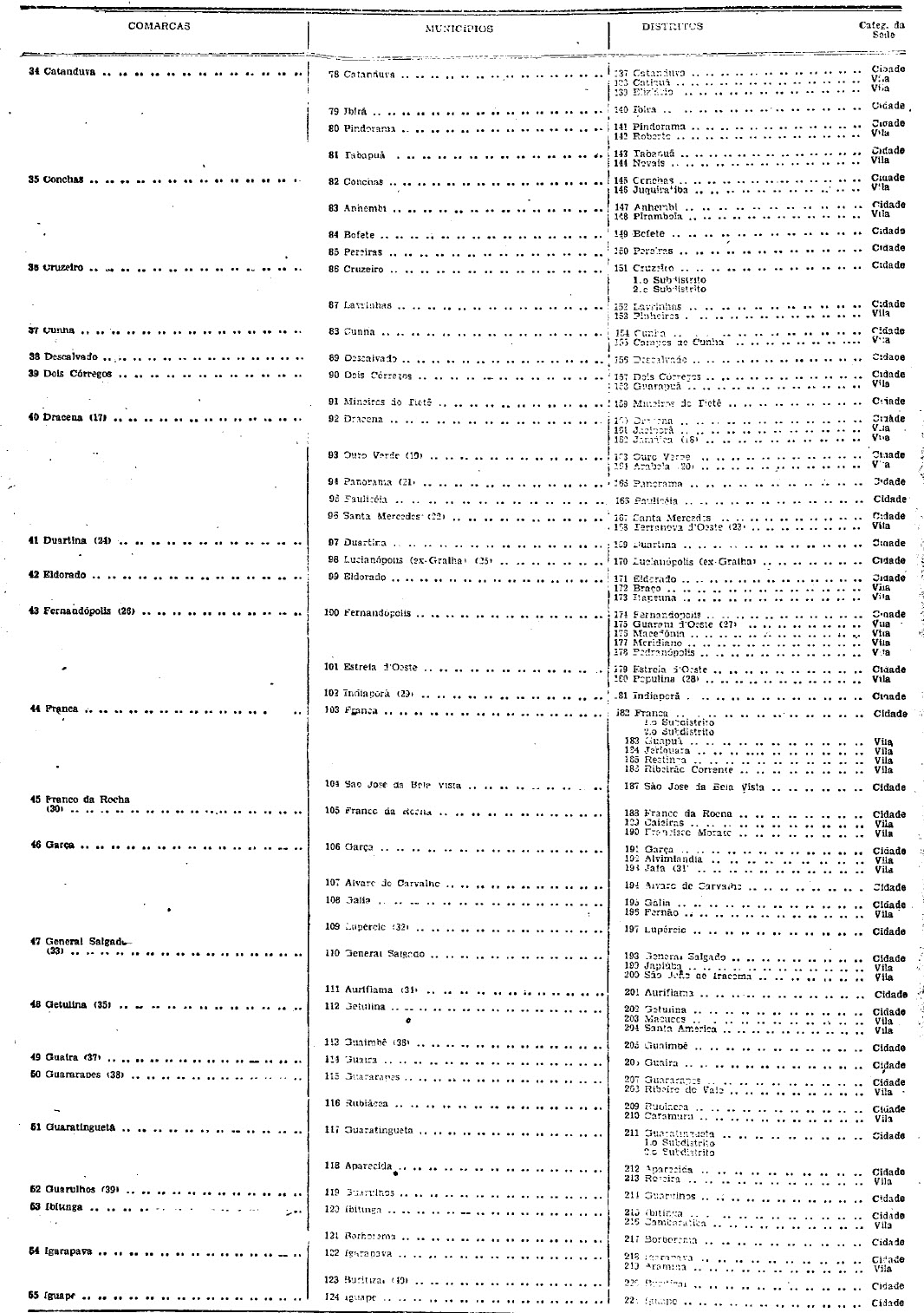Quadro Territorial, Administrativo e Judiciário do Estado, para