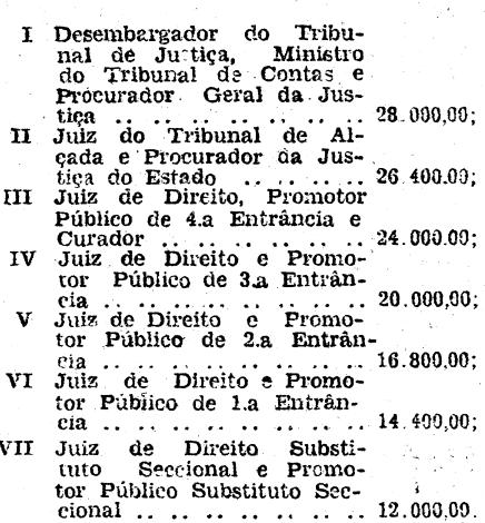 Artigo 2.º - Os vencimentos mensais da Magistratura e do Ministério Público ficam fixados na seguinte conformidade: