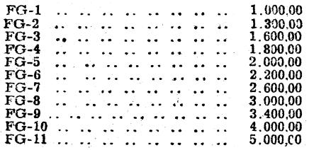Artigo 3.º - Fica substituida pela seguinte a escala de valores