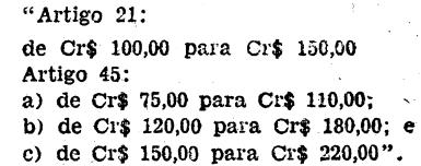 Artigo 5.º - Fica elevada para Cr$ 600,00 (seiscentos cruzeiros)
