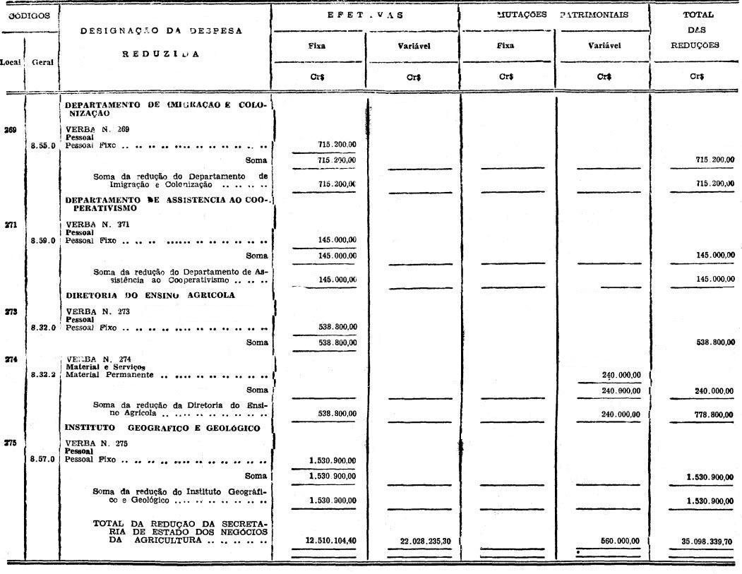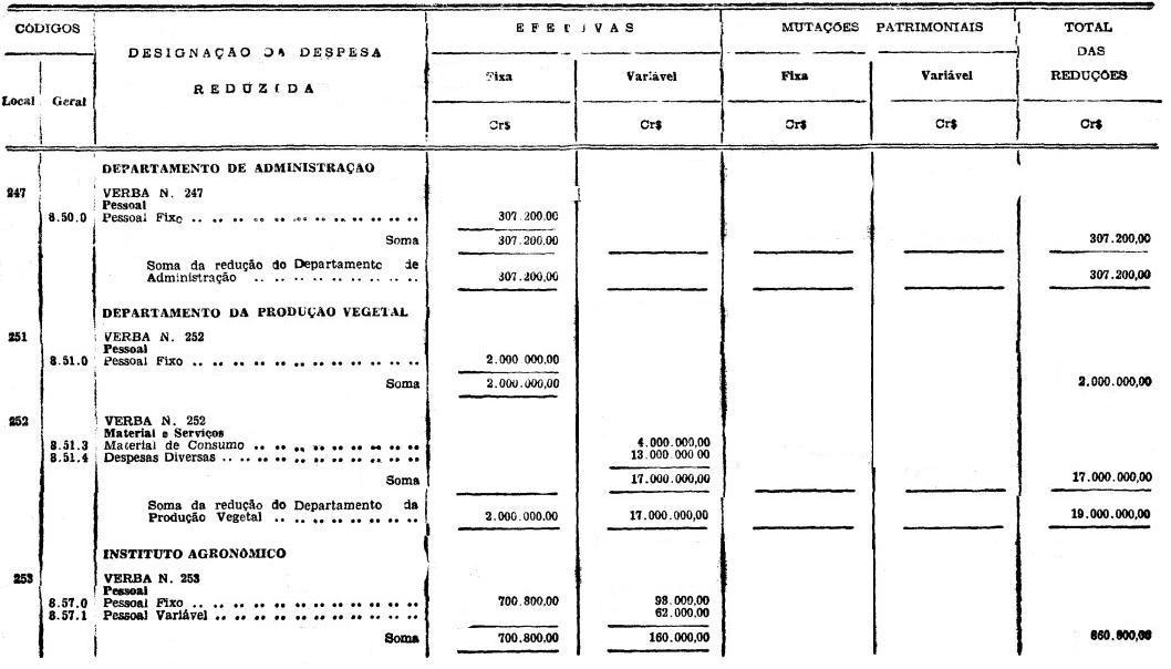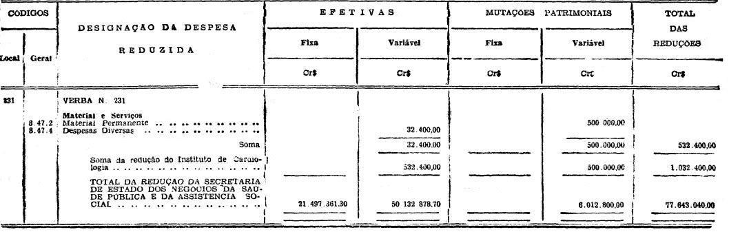 a) Cr$ 379.351.855,00 (TREZENTOS E SETENTA E NOVE MILHÕES, TREZENTOS E CINQUENTA E UM MIL E OITOCENTOS E CINQUENTA E CINCO CRUZEIROS), provenientes das reduções de que trata o artigo 1º;