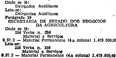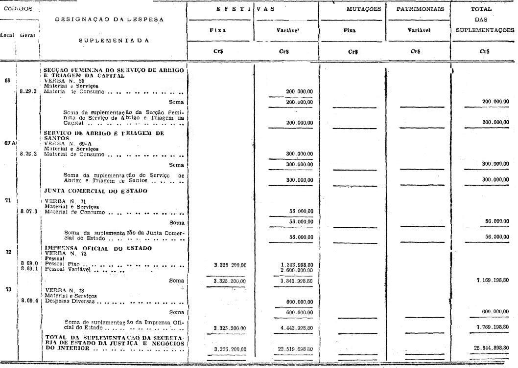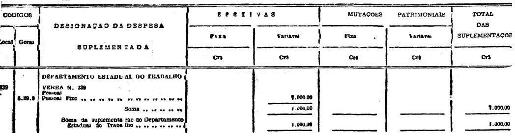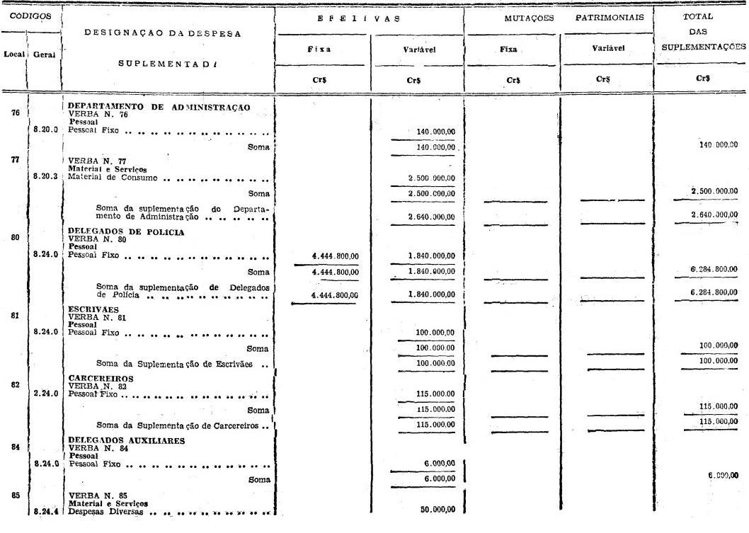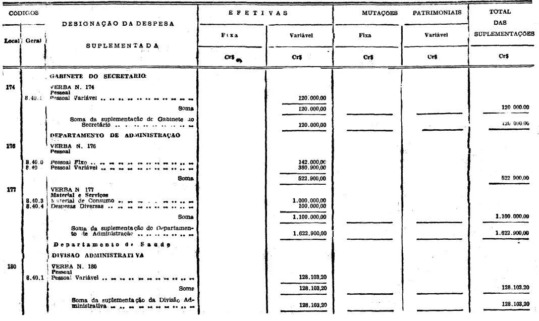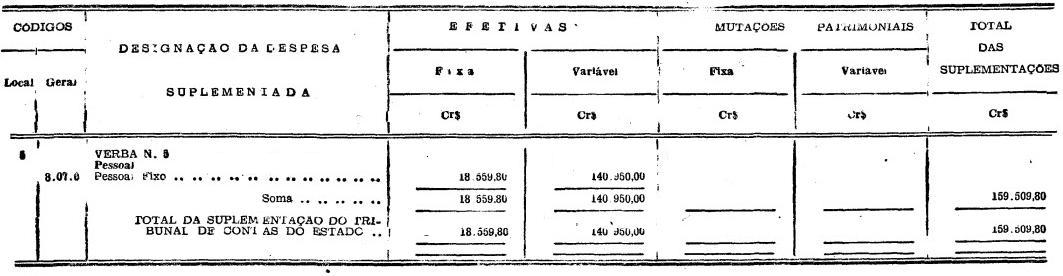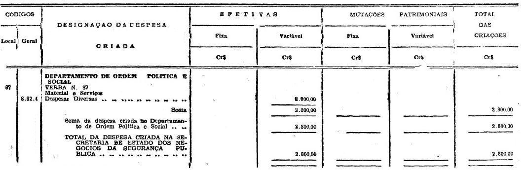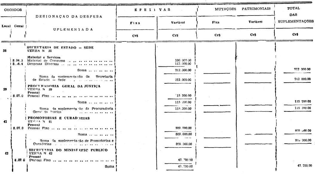 Artigo 3º - Ficam criadas, no orçamento vigente, no total de Cr$ 724.200,00 (SETECENTOS E VINTE E QUATRO MIL E DUZENTOS CRUZEIROS), as dotações abaixo discriminadas:
