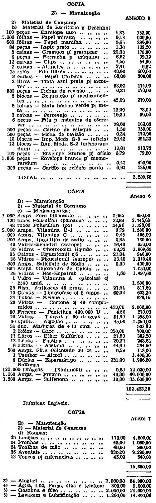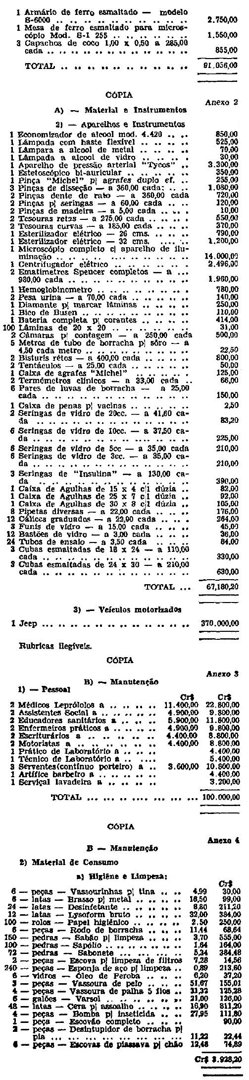 O jockey Club se compromete a adquirir todo o material e a proceder a instalação dos 4 (quatro) dispensários, segundo os anexos 1 e 2 (um e dois) dêste Convênio, provendo, também, o seu custeio durante o prazo de 365 (trezentos e sessenta e cinco) dias a partir da data da instalação de cada dispensário, do material de consumo mencionado nos anexos 4 a 7 (quatro a sete).