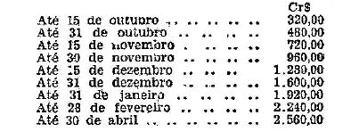 será fixada em Cr$ 20,00 (vinte cruzeiros) por saca de 30 quilos.