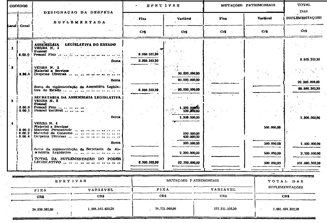 Geral e a discriminado do "Total Geral da Suplementação do Estado",