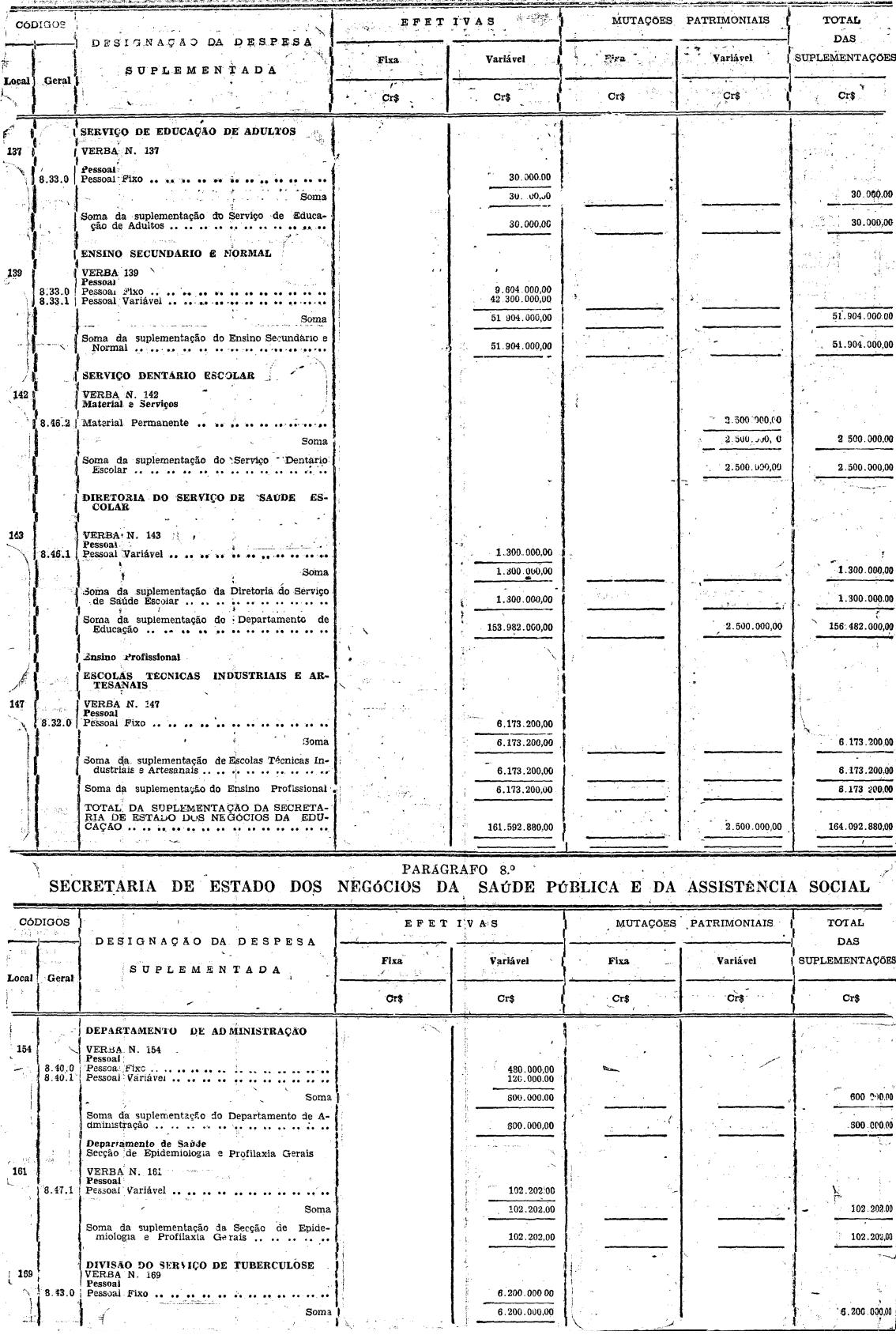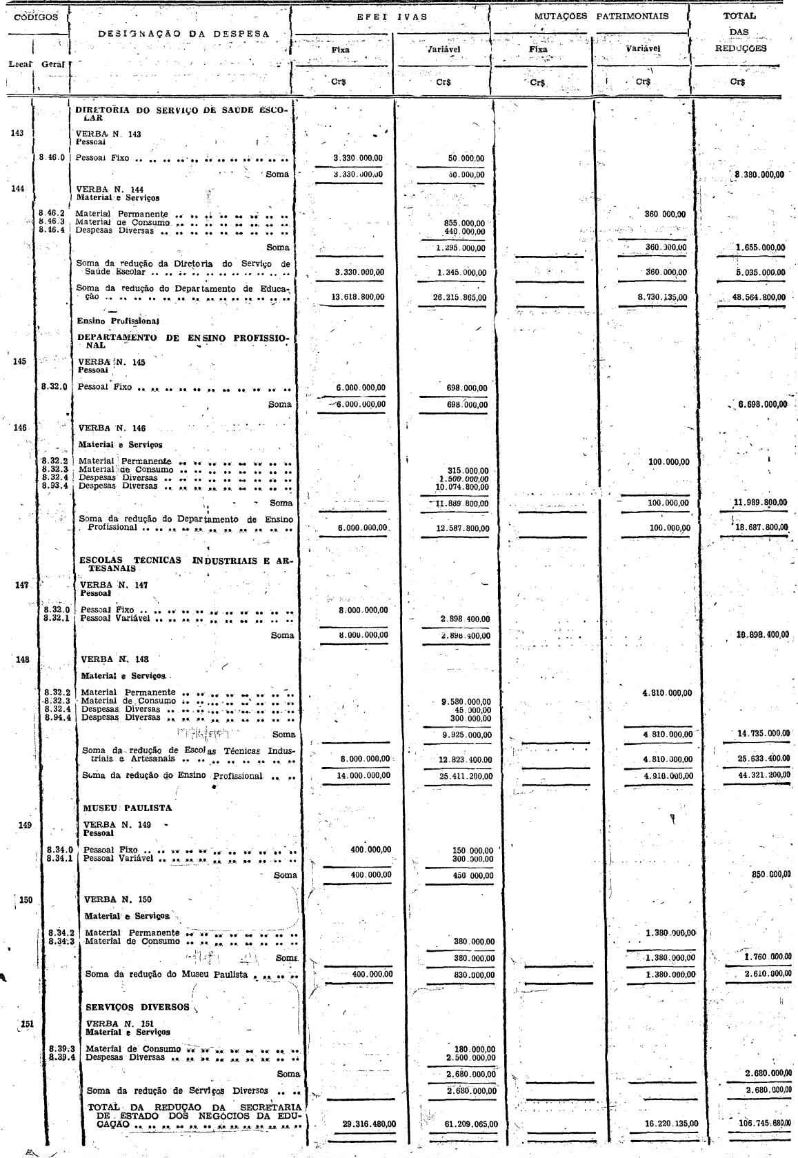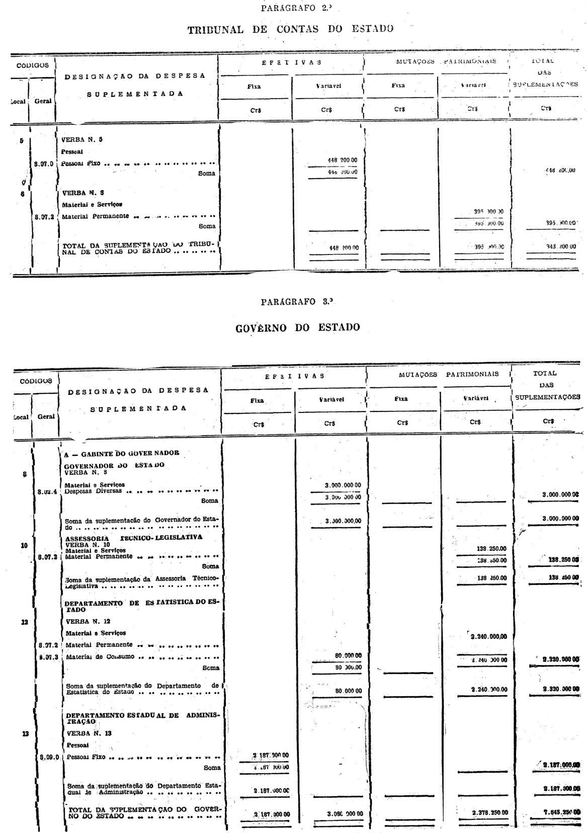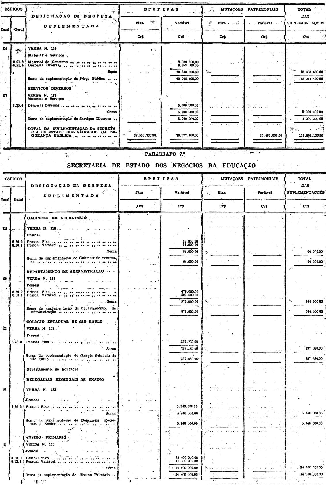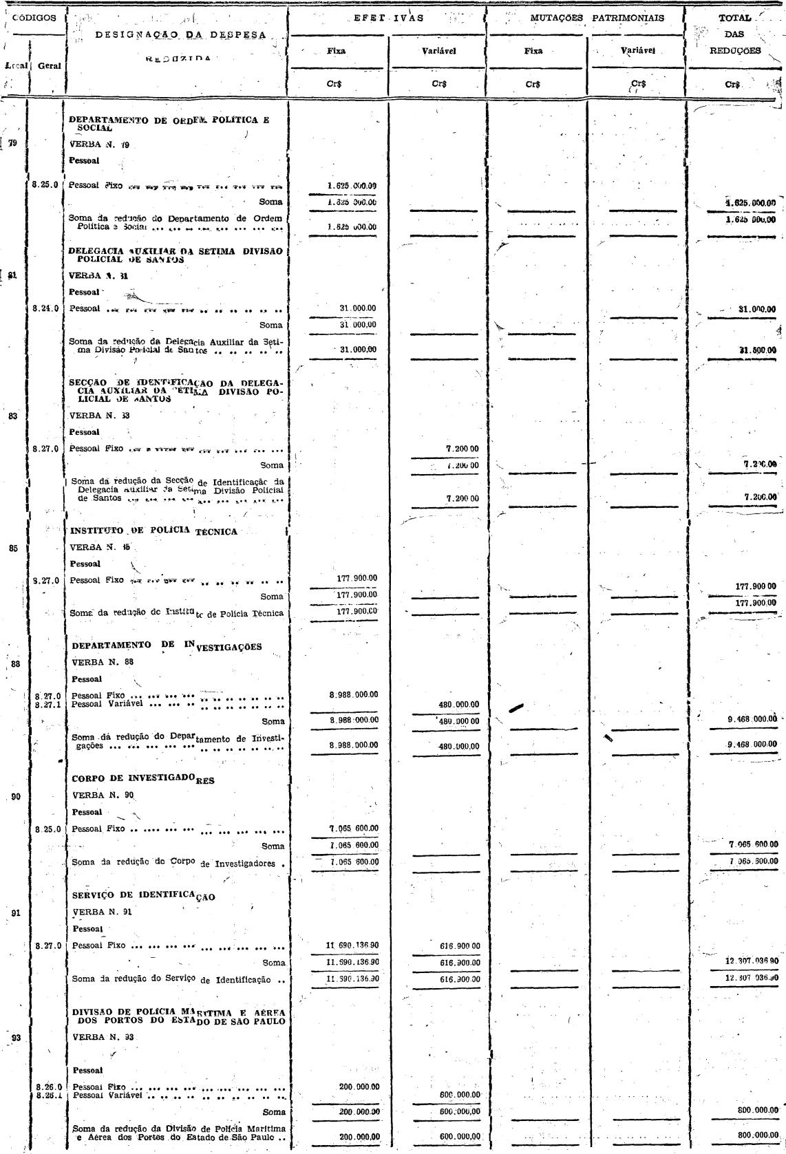 Artigo 1º - Ficam suplementadas, na importância de Cr$ 1.989.727.151,10 (um bilhão, novecentos e oitenta e nove milhões, setecentos e vinte e sete mil, cento e cinqüenta e um cruzeiros e dez centavos), as verbas do orçamento vigente abaixo discriminadas: