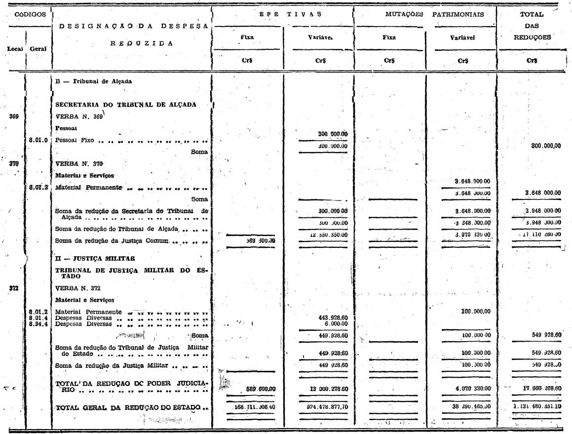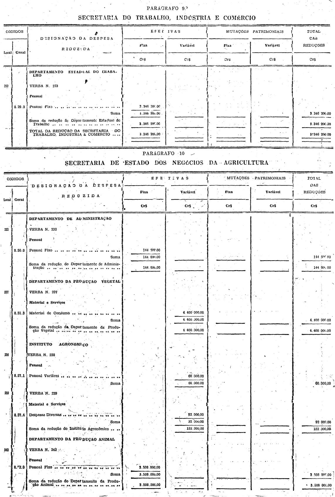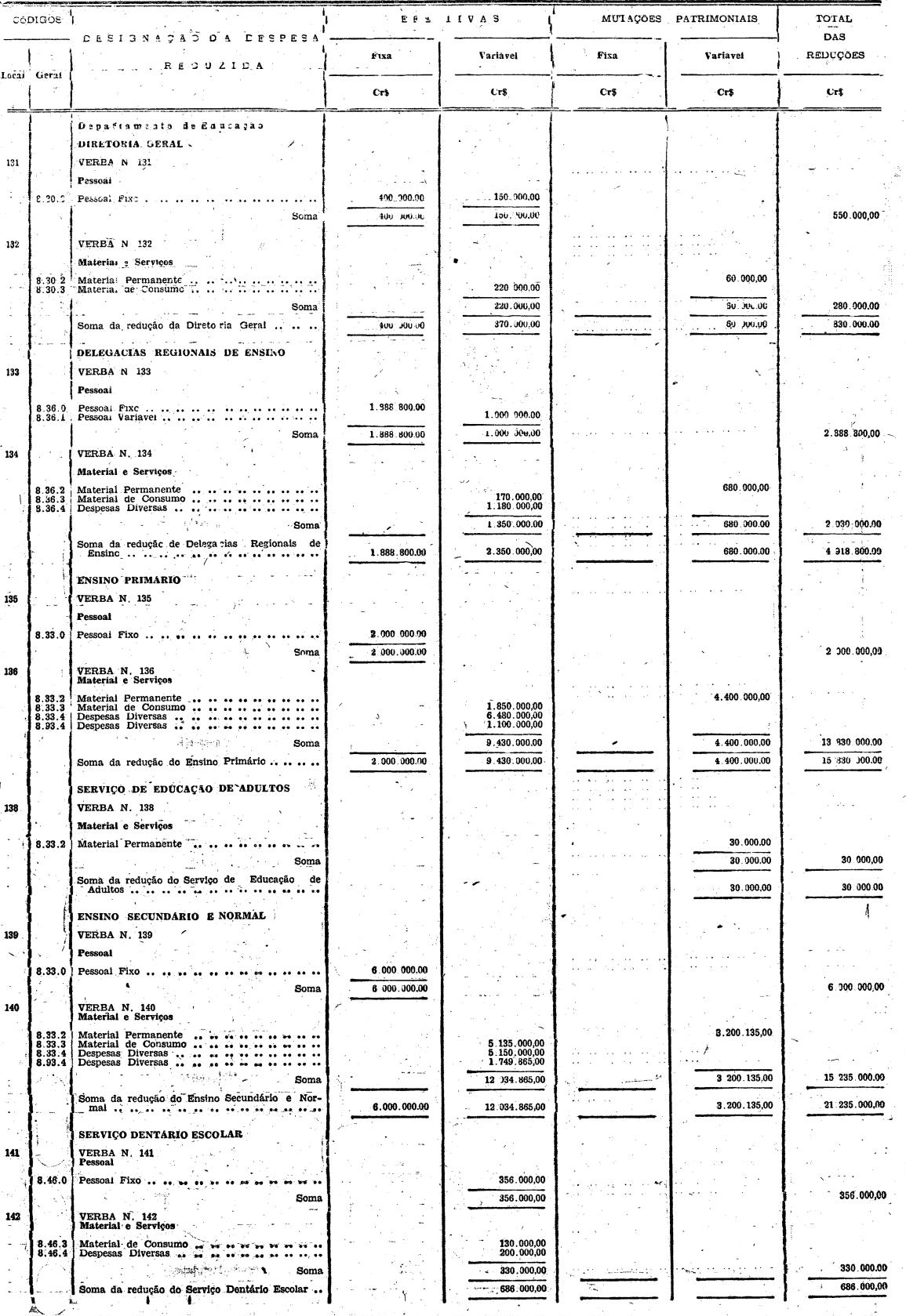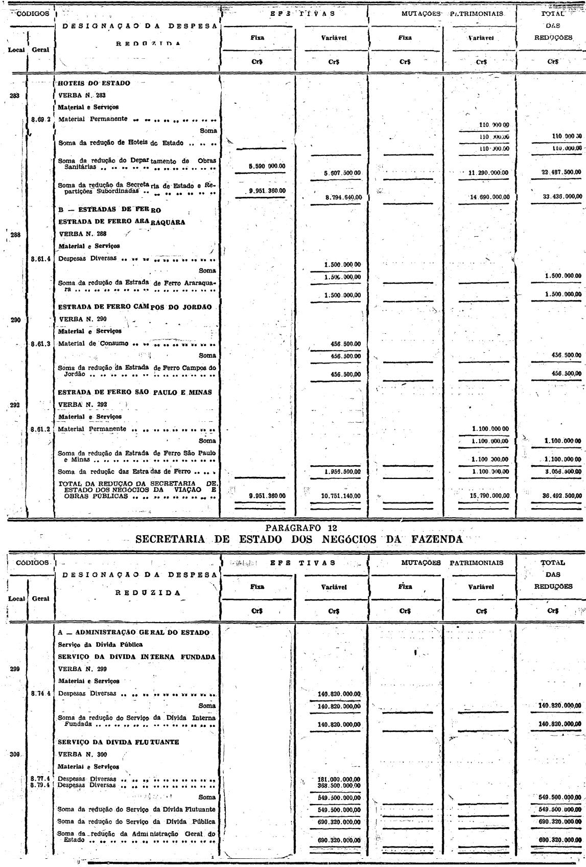 a) Cr$ 1.131.480.351,10 (um bilhão, cento e trinta e um milhões, quatrocentos e oitenta mil, trezentos e cinqüenta e um cruzeiros e dez centavos), provenientes das reduções de que trata o artigo 2º;