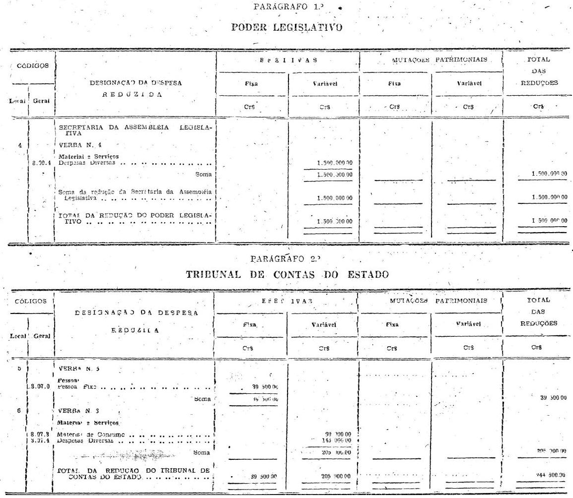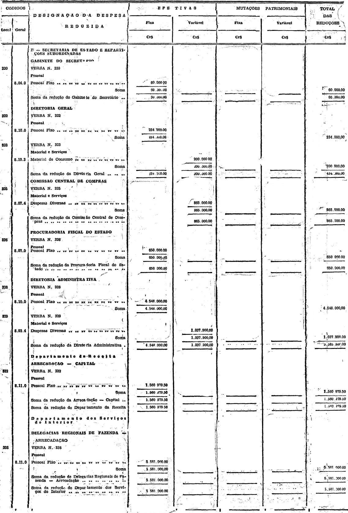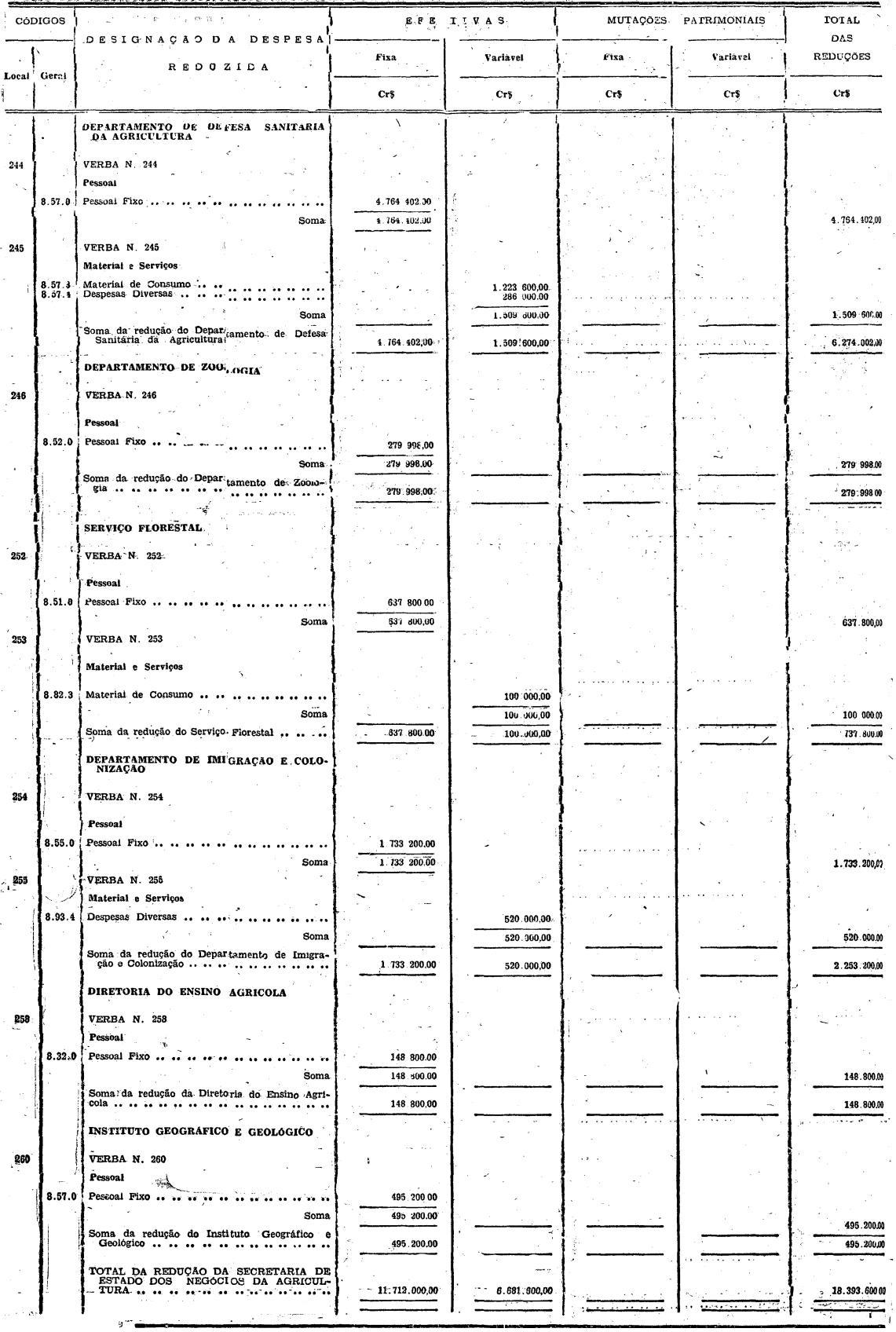 a) Cr$ 1.131.480.351,10 (um bilhão, cento e trinta e um milhões, quatrocentos e oitenta mil, trezentos e cinqüenta e um cruzeiros e dez centavos), provenientes das reduções de que trata o artigo 2º;