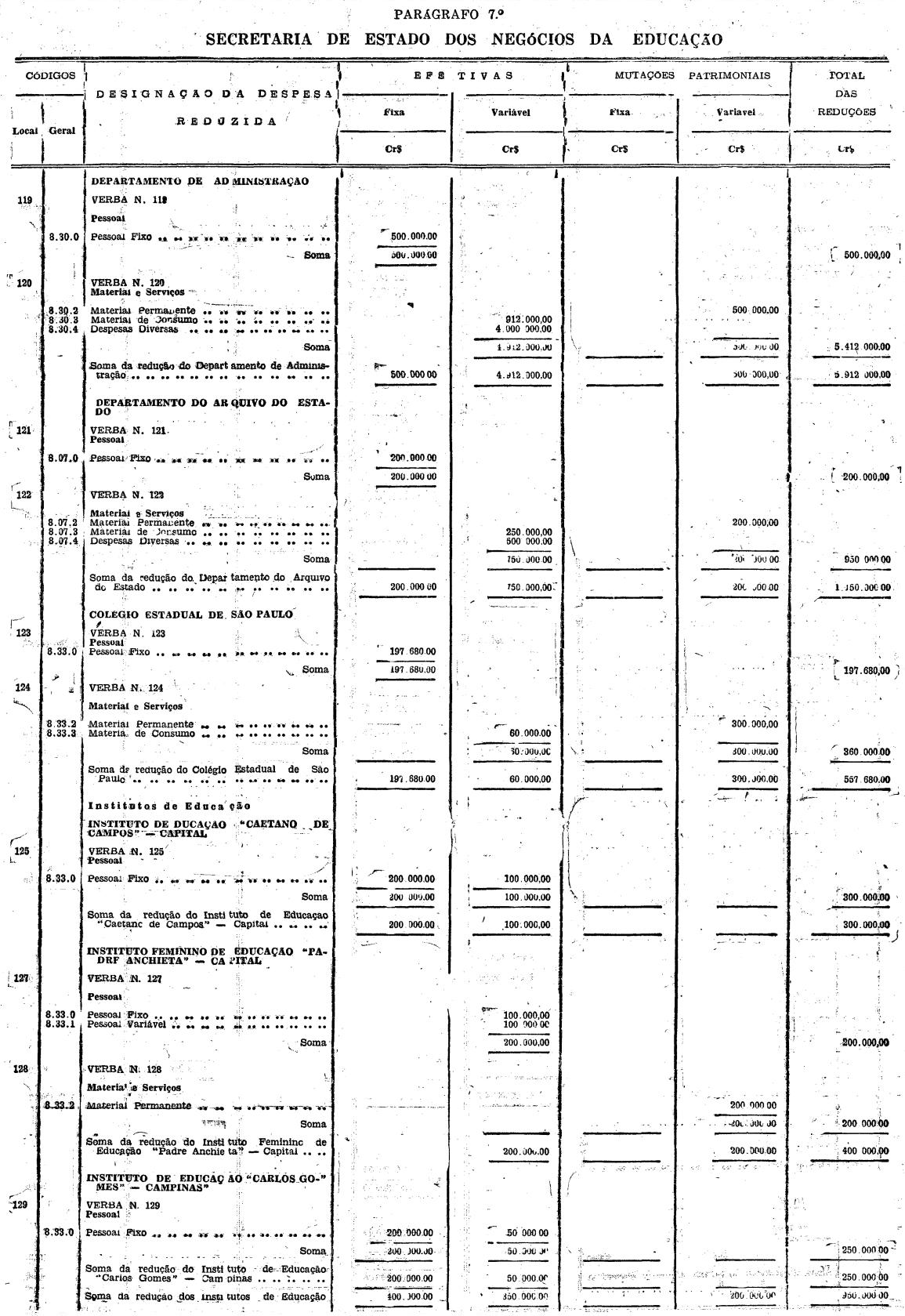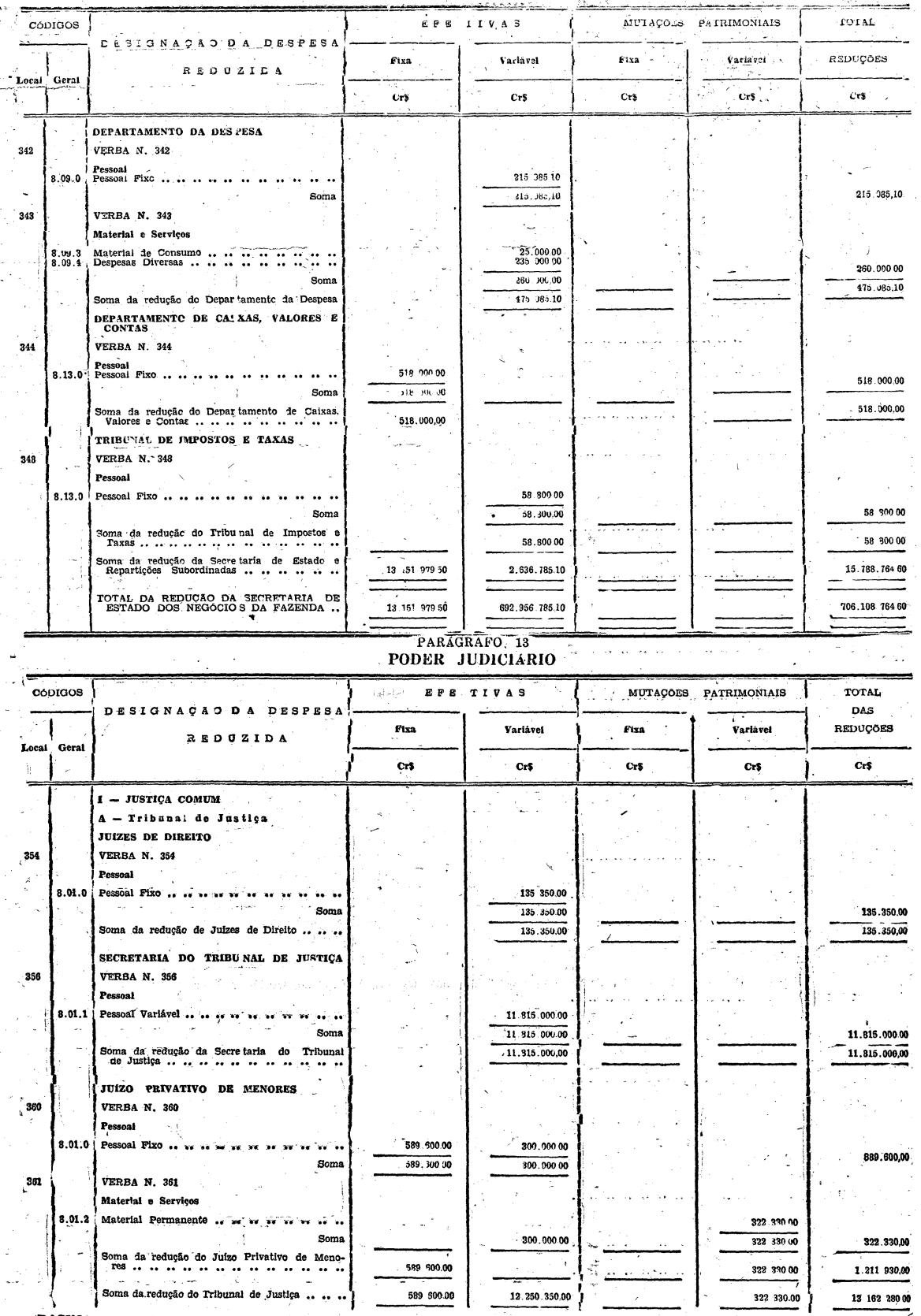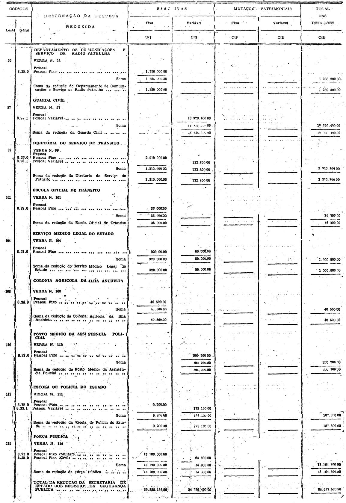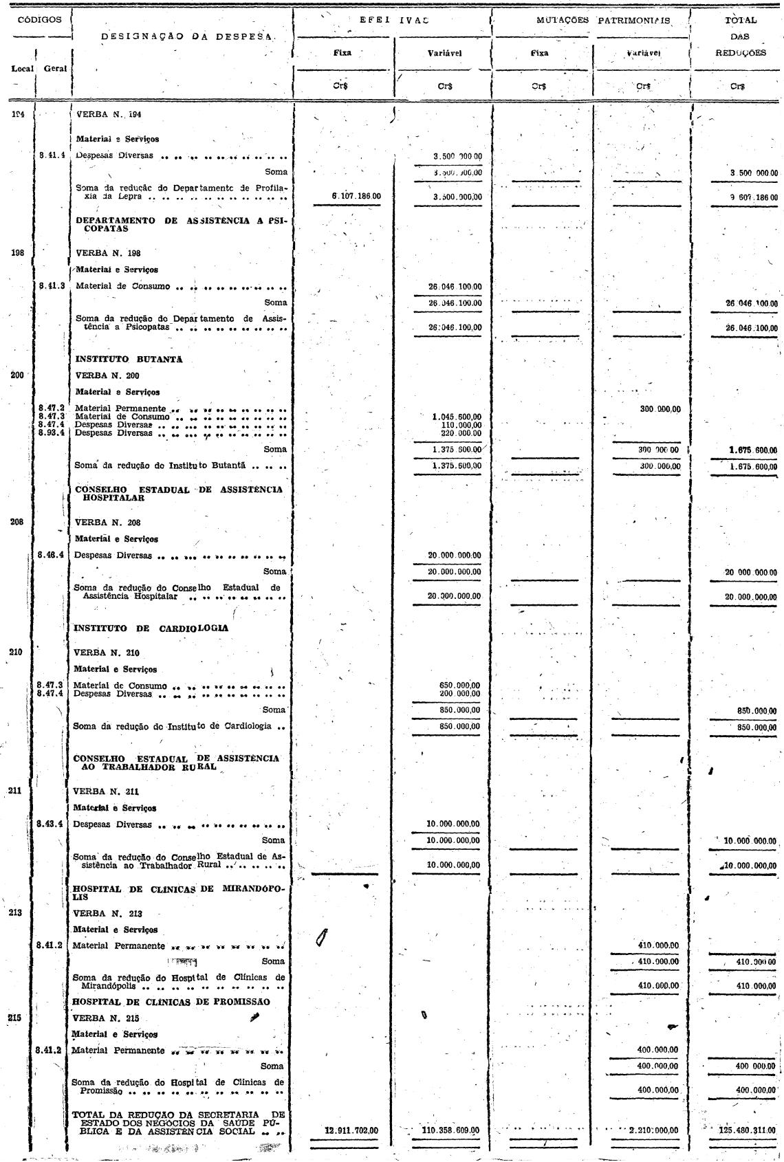 a) Cr$ 1.131.480.351,10 (um bilhão, cento e trinta e um milhões, quatrocentos e oitenta mil, trezentos e cinqüenta e um cruzeiros e dez centavos), provenientes das reduções de que trata o artigo 2º;