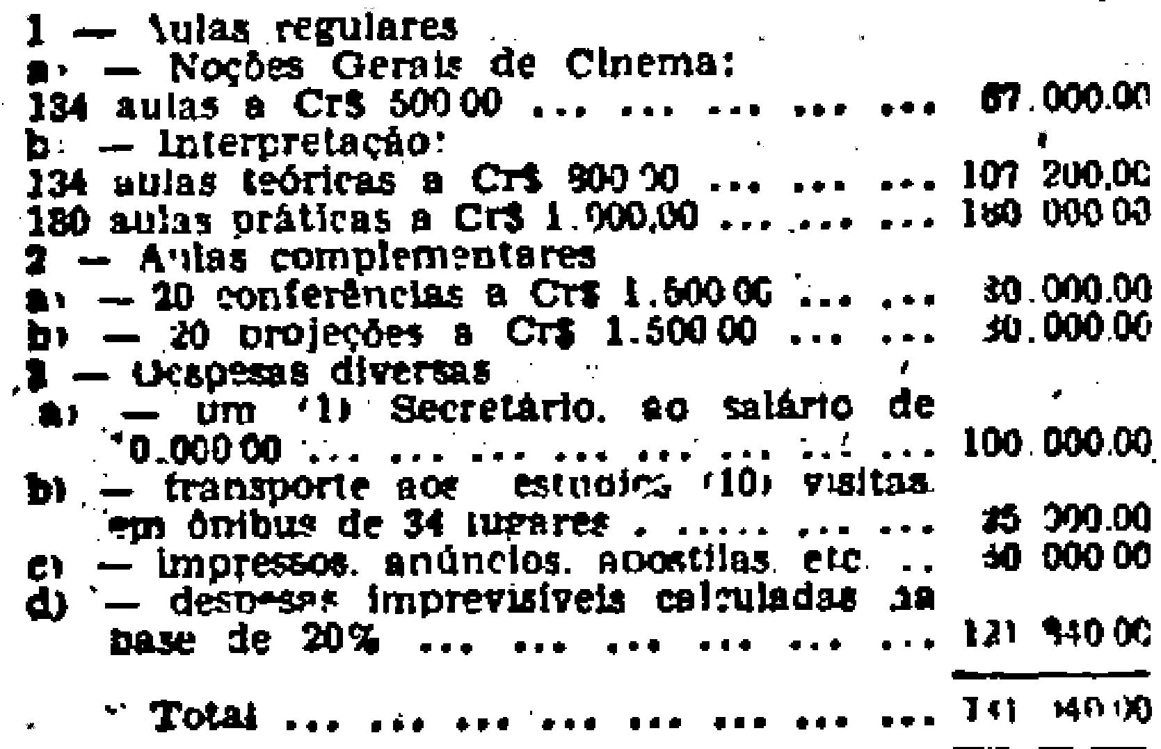 VI) - O orçamento do Curso fica fixado do comum acôrdo