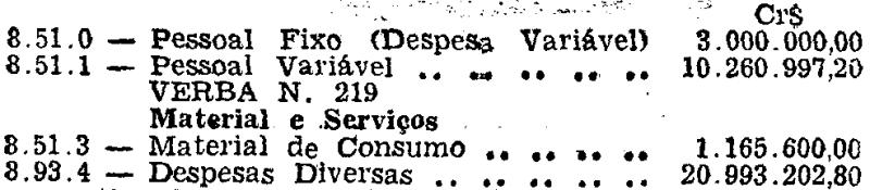 Agricultura, um crédito de Cr$ 35.419.800,00 (trinta e cinco milhões,