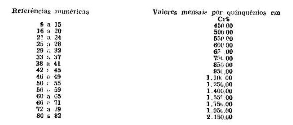 Artigo 21 - O adicional por tempo de serviço, instituído por esta lei, em relação aos integrantes das carreiras de Delegado de Polícia, Escrivão de Polícia, Investigador de Polícia, Radiotelegrafista e Carceireiro, tôdas do Quadro da Secretaria da Segurança Pública, e aos componentes da Fôrça Pública do Estado e da Guarda Civil de São Paulo, bem como aos extranumerários que desempenham funções de iguais denominações, admitidos pela Secretaria da Segurança Pública, corresponderá aos valores a seguir indicados: