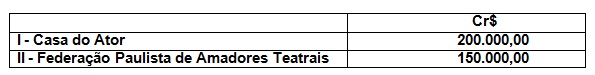 Artigo 1º - Fica o Poder Executivo autorizado a conceder, no corrente exercício, pela Comissão Estadual de Teatro, os auxílios abaixo enumerados: