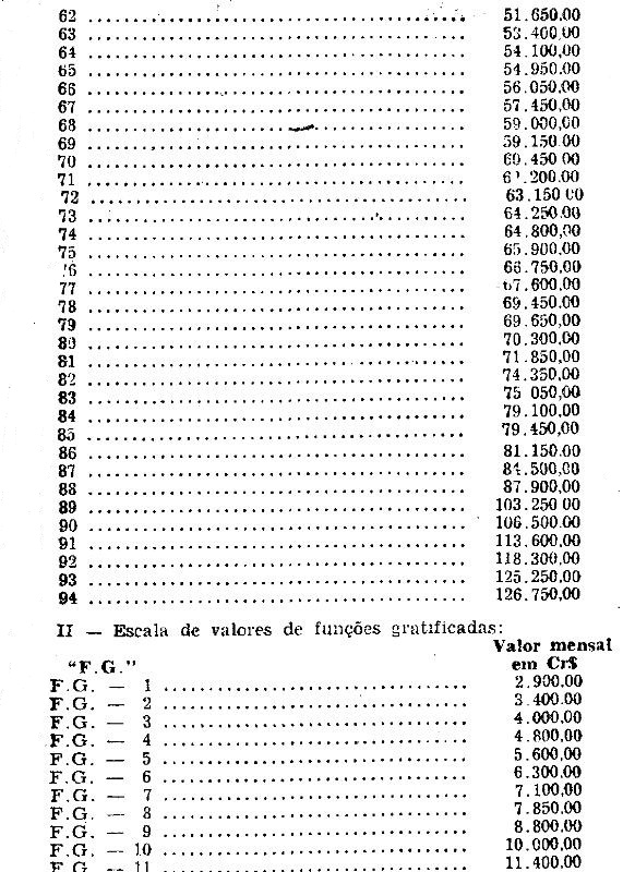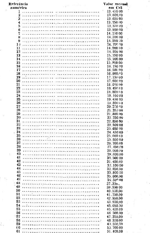 - de Cr$ 365,00 (trezentos e sessenta e cinco cruzeiros) para Cr$ 650,00 (seiscentos e cinquenta cruzeiros).