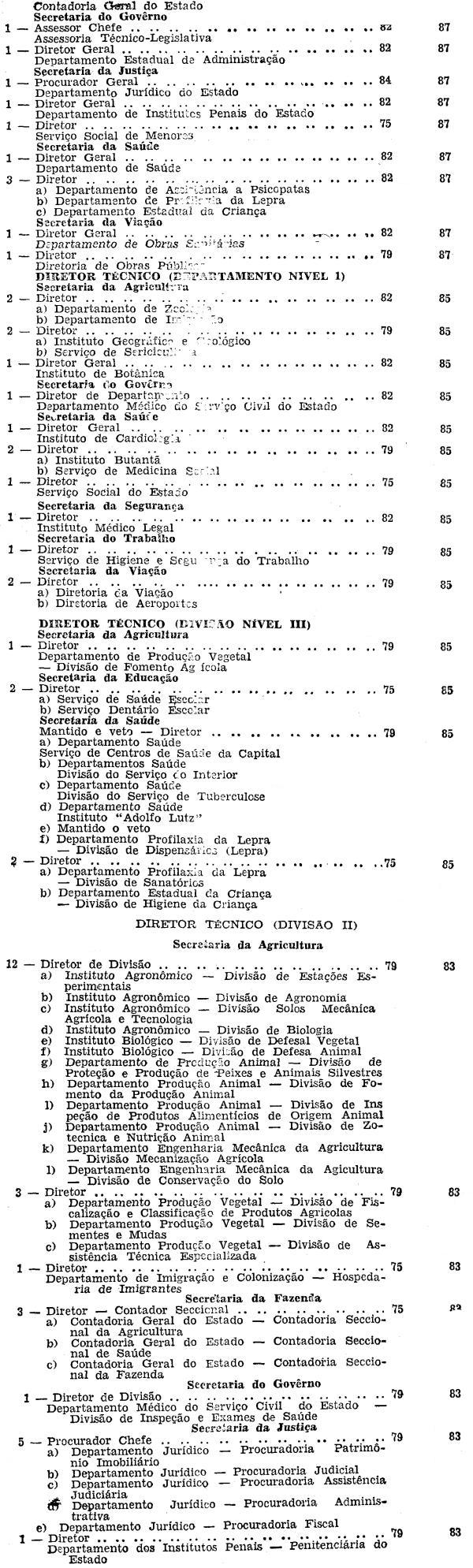 Departamento Jurídico do Estado, bem como a dos cargos de Assessor
