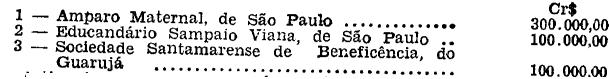 Artigo 1º - Ficam retificados para Asilo de Mendigos, de Amparo, e Associação Feminina de Assistência à Infancia, de Limeira, respectivamente, os nomes das entidades beneficiadas com o auxílio constantes do item I da Relação n. 22 do Artigo 1º da Lei n. 6.027 de 31 de dezembro de 1960 e do n. 2 do item III da Relação n. 34 do Artigo 1º da Lei n. 6.628, de 30 de dezembro de 1961.