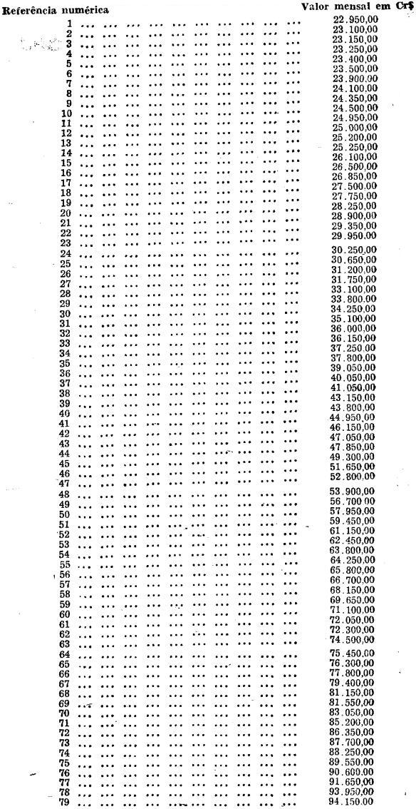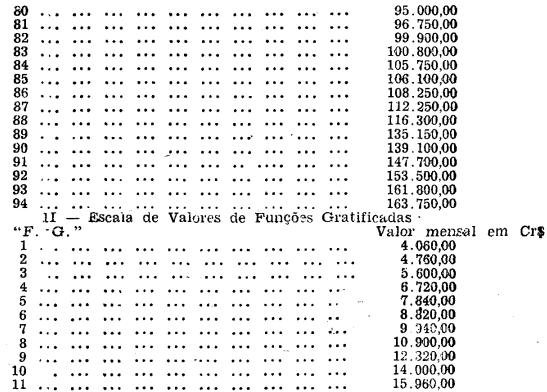 Artigo 1º - A partir de 1º de janeiro de 1963, passam a ser os seguintes os valores das escalas de vencimentos, salários e de funções gratificadas, estabelecidos no Artigo 1º da Lei n. 6.800 de 26 de abril de 1962: