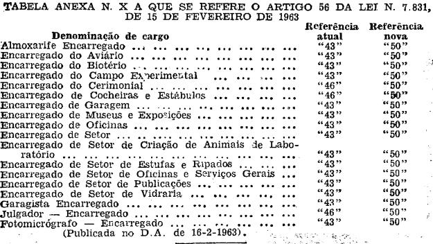 Artigo 56 - Os vencimentos dos cargos de Encarregado de Setor, referência "43" e os dos demais cargos de Encarregado, constantes da Tabela Anexa n. X, todos da Tabela II, da Parte Permanente, dos Quadros das Secretarias de Estado, ficam elevados para a referência "50".