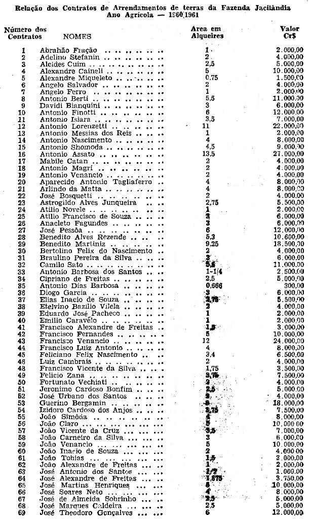 Artigo 1º - Ficam aprovados os contratos de arrendamento de terras do próprio estadual denominado "Fazenda Jacilândia", situado no município de Valentim Gentil, correspondentes ao ano agrícola de 1960/1961, e objeto da relação anexa que fica fazendo parte integrante desta lei.