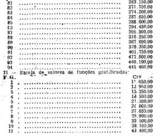 Artigo 1.º - A partir de 1.º de dezembro de 1964, passam a ser os seguintes os valores das escalas de referências de vencimentos e salários e de Funções Gratificadas, estabelecidos no Artigo 1.º da Lei n. 8 069, de 22 de janeiro de 1964: