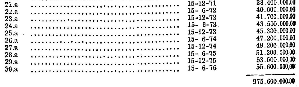 O principal dêste contrato será pago ao Banco em 15 (quinze) anos, em 30 prestações semestrais e sucessivas, nas datas e nos valores constantes da Tabela de Amortização que constitui o Anexo II ao presente contrato, vencendo-se a 1.° (primeira) prestação em 15 (quinze) de dezembro de 1960, obrigando-se o Creditado a liquidar com a última prestação, em 15 (quinze) de junho de 1976, tôdas as resposabilidades decorrentes do presente contrato.