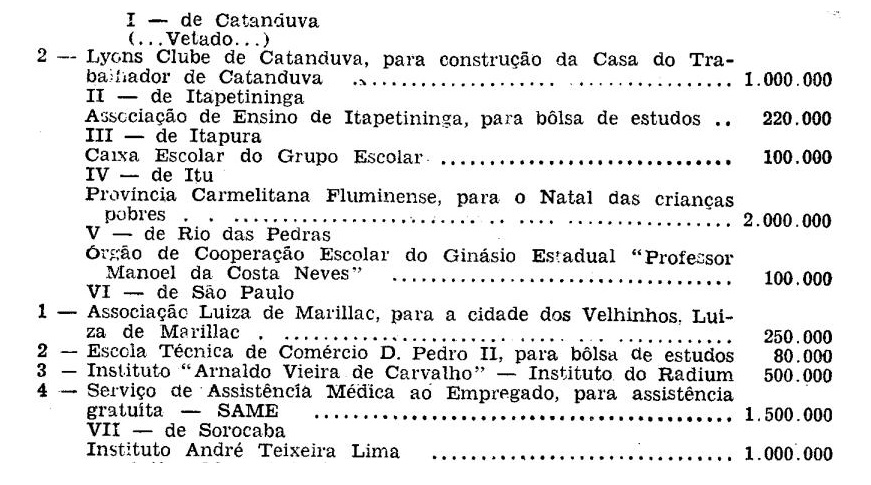 Artigo 2.° - Ficam retificados para Associação de Pais e Amigos dos Excepcionais de São Paulo, de São Paulo, Tenda Espírita de Umbanda "Pai Benedito" de Jundiaí, Congregação das Servas do Santíssimo Sacramento, de Taubaté, Centra de Estudos Químicos Hemncti Rheinboldt, para bôlsa de estudos, de São Paulo, Ginásio e Escola Normal N.S. Auxiliadora, de Tupã, Casa de Caridade São Vicente de Paulo, de Cajuru, e Associação Educativa Sagrado Coração de Jesus, Mantenedora do Cológio Sagrado Coração de Jesus, de Jardinópolis, respectivamente os nomes das entidades beneficiadas com os auxílios constantes do n. 3 do item VII da Relação n, 7; do n. 135 do item IV da Relação n. 22; do item XXX da Relação n. 24; do n. 17 do item VIII da Releção n. 25; do item XXVII da Relação n. 33; e do n. 5 do item VI e do n. 6 do item XVIII da Relação n. 102, tôdas do Artigo 1.° da Lei n. 8.099, de 7 de abril de 1964.