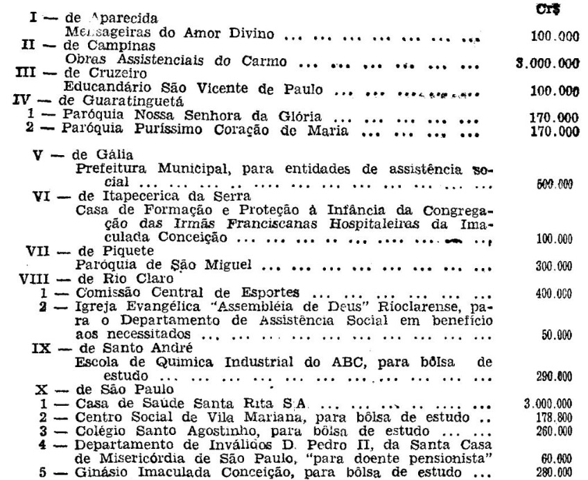 Artigo 2.º - Fica retificada para Sociedade Beneficente "Caritas Nostra", de Cesário Lange, a denominação da entidade beneficiada com o auxílio constante do n. 2 do item VI do artigo 4.° da Lei n. 8.230, de 13 de julho de 1964.