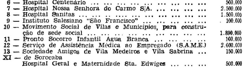 Artigo 1.º - Ficam retificados para Sociedade da Santa Casa de Misericórdia, de Guará, Associação dos Funcionários e Servidores Públicos de Sorocaba, de Sorocaba, Barra F. C, de Jaguariúna, e Sociedade Esportiva e Cultural Mocidade Armênia de Presidente Altino, de Osasco, respectivamente, os nomes das entidades beneficiadas com os auxílios constantes do item VI da Relação n. 50; do n. 10 do item IX da Relação n. 96; do n. 4 do item XIX da Relação n. 105; e do n. 3 do item III da Relação n. 120, tôdas do artigo 1.° da Lei n. 8.099, de 7 de abril de 1964.