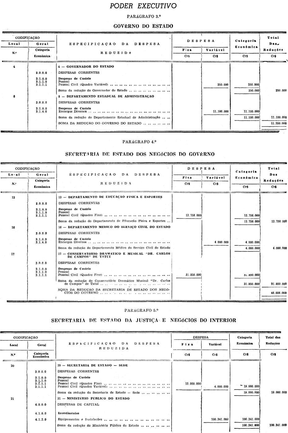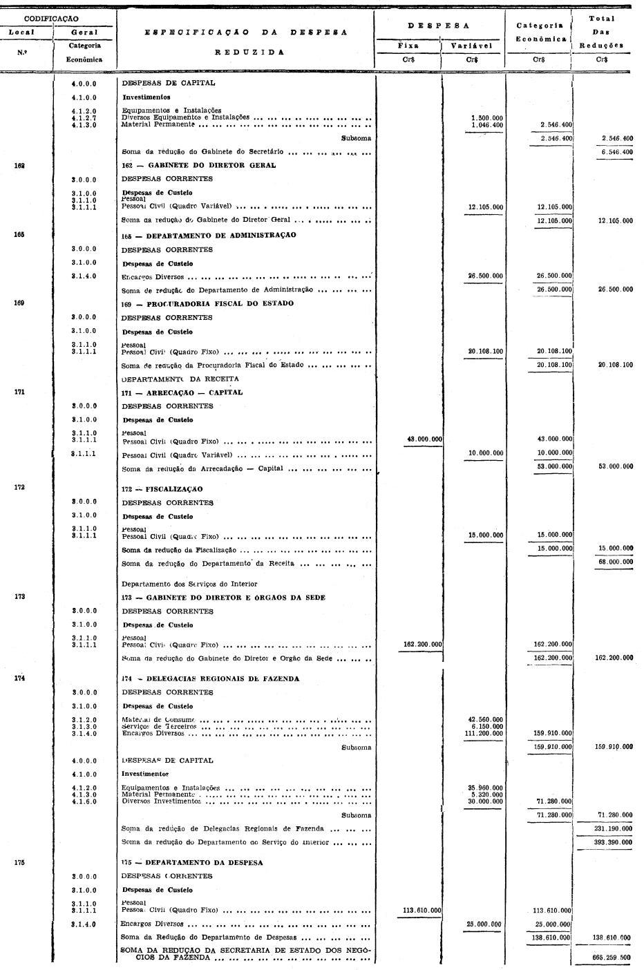 a) Cr$ 201.801.721.000 (DUZENTOS E UM BILHÕES, OITOCENTOS E UM MILHÕES, SETECENTOS E VINTE E UM MIL CRUZEIROS), provenientes das reduções de que trata o Artigo 2º;