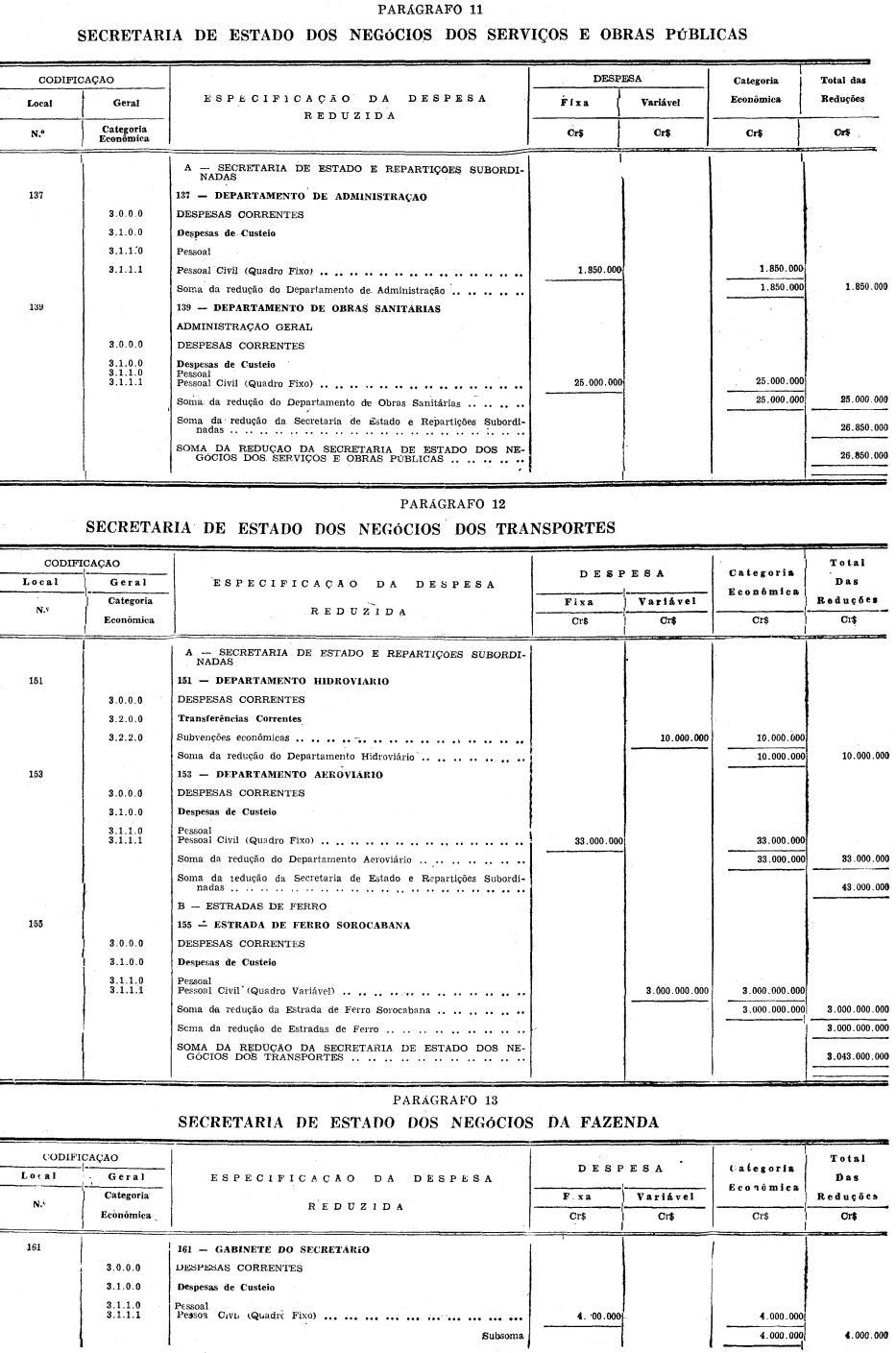 c) Cr$ 12.417.848.000 (DOZE BILHÕES, QUATROCENTOS E DEZESSETE MILHÕES, OITOCENTOS E QUARENTA E OITO MIL CRUZEIROS), provenientes de parte do crédito especial aberto pelo Decreto n. 46.151, de 6 de abril de 1966 e autorizado pelo Artigo 3º, da Lei n. 9.206, de 29 de dezembro de 1965;