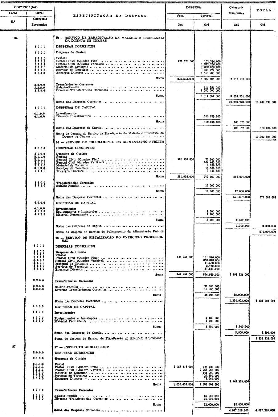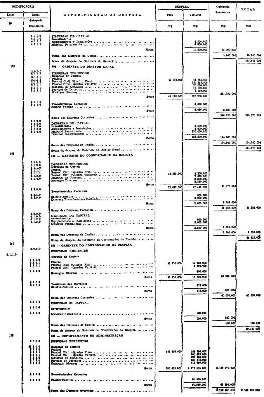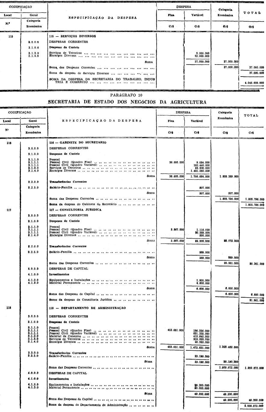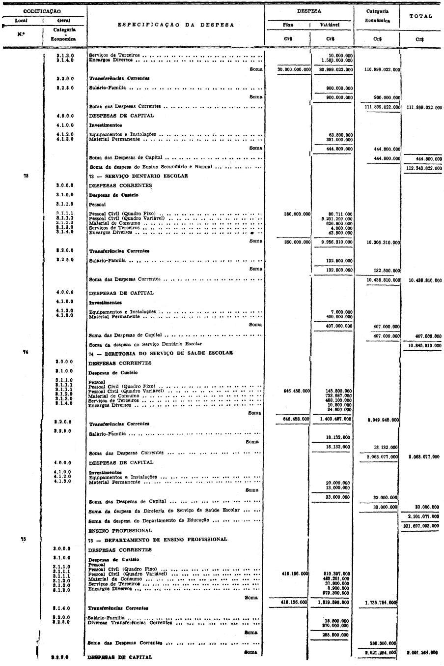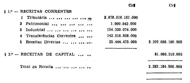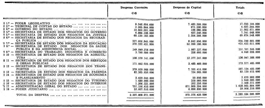 desta lei orça a Receita e fixa a Despesa em Cr$