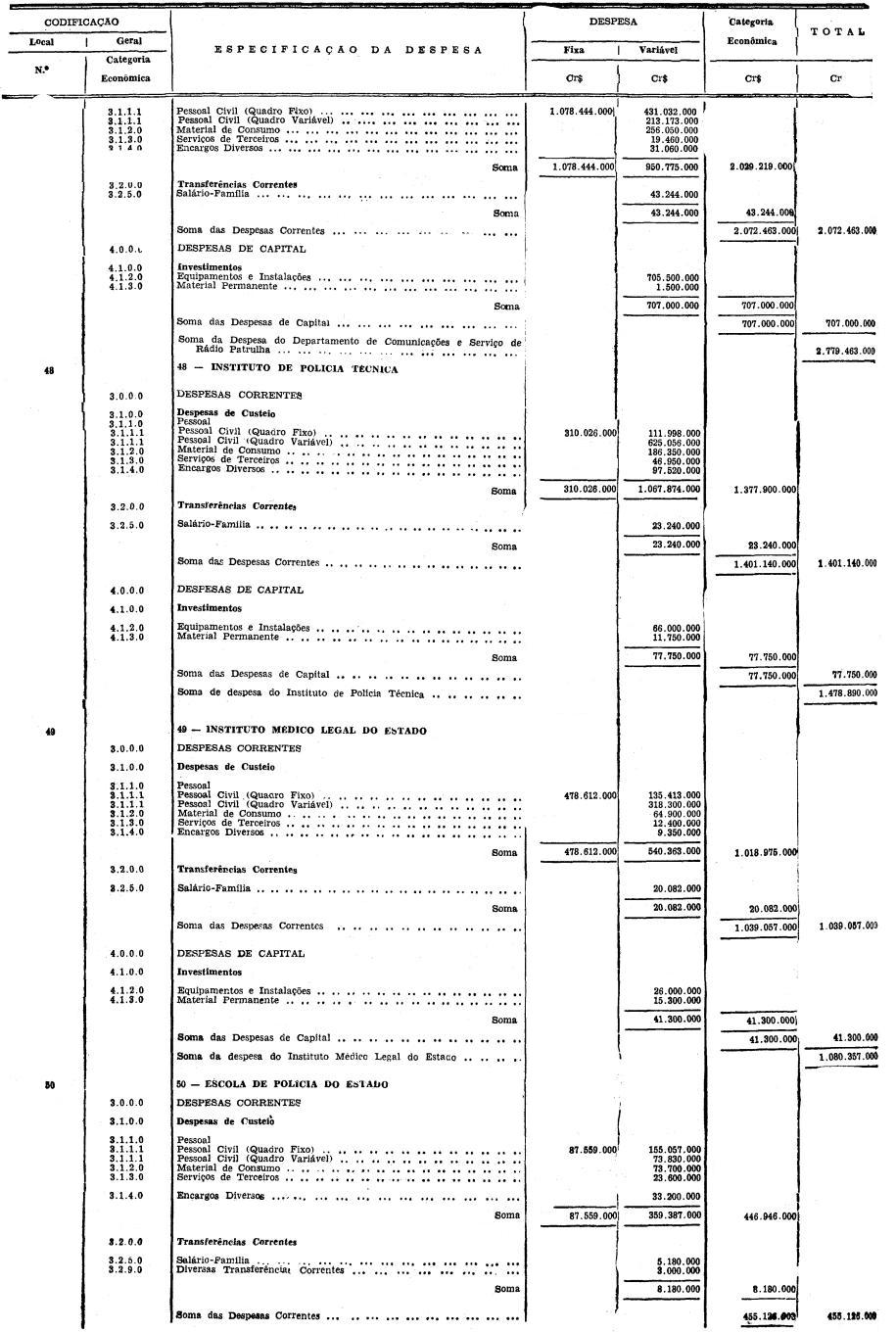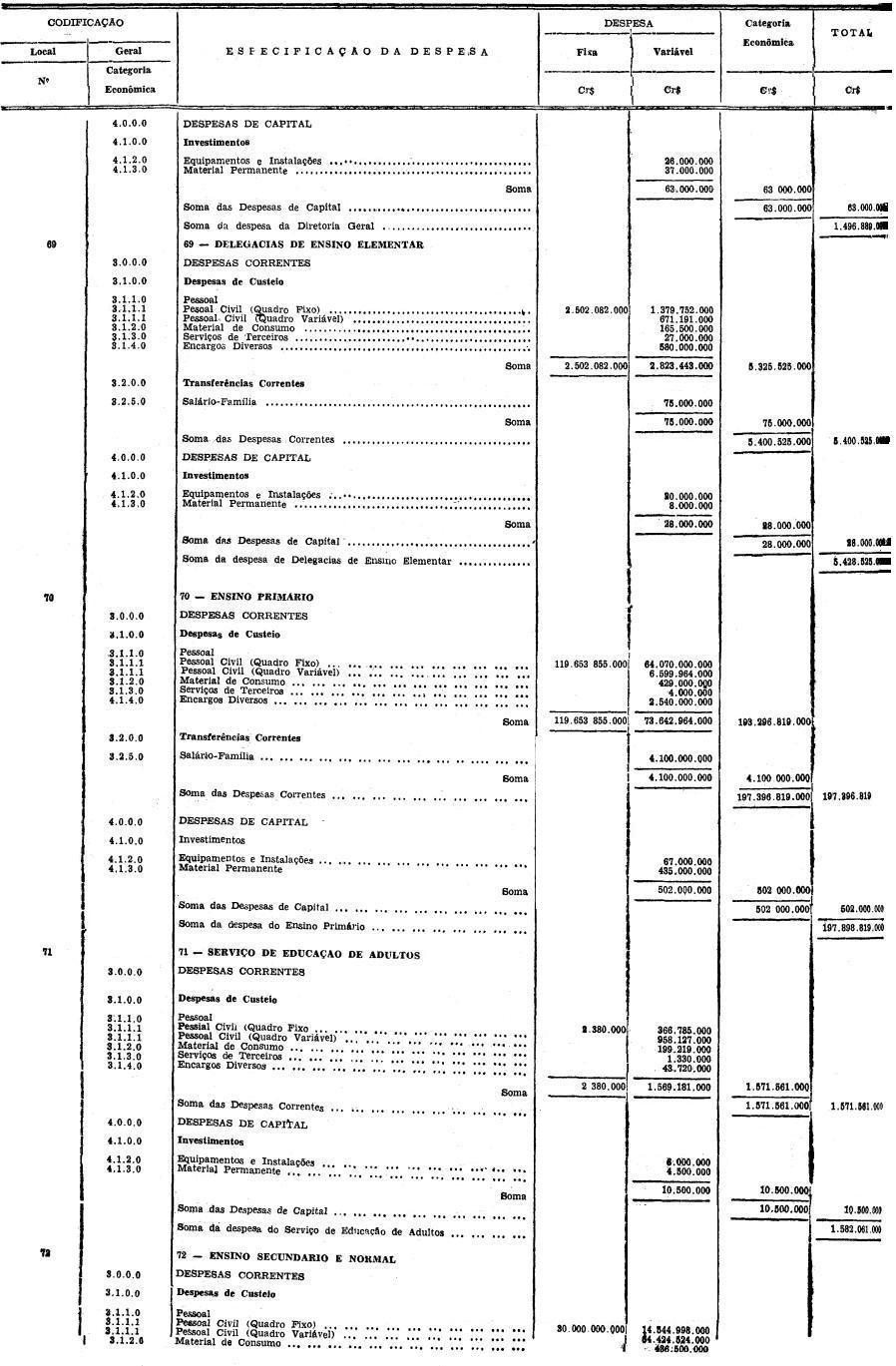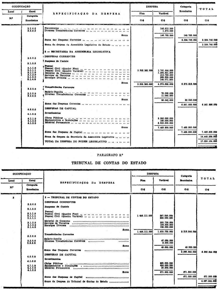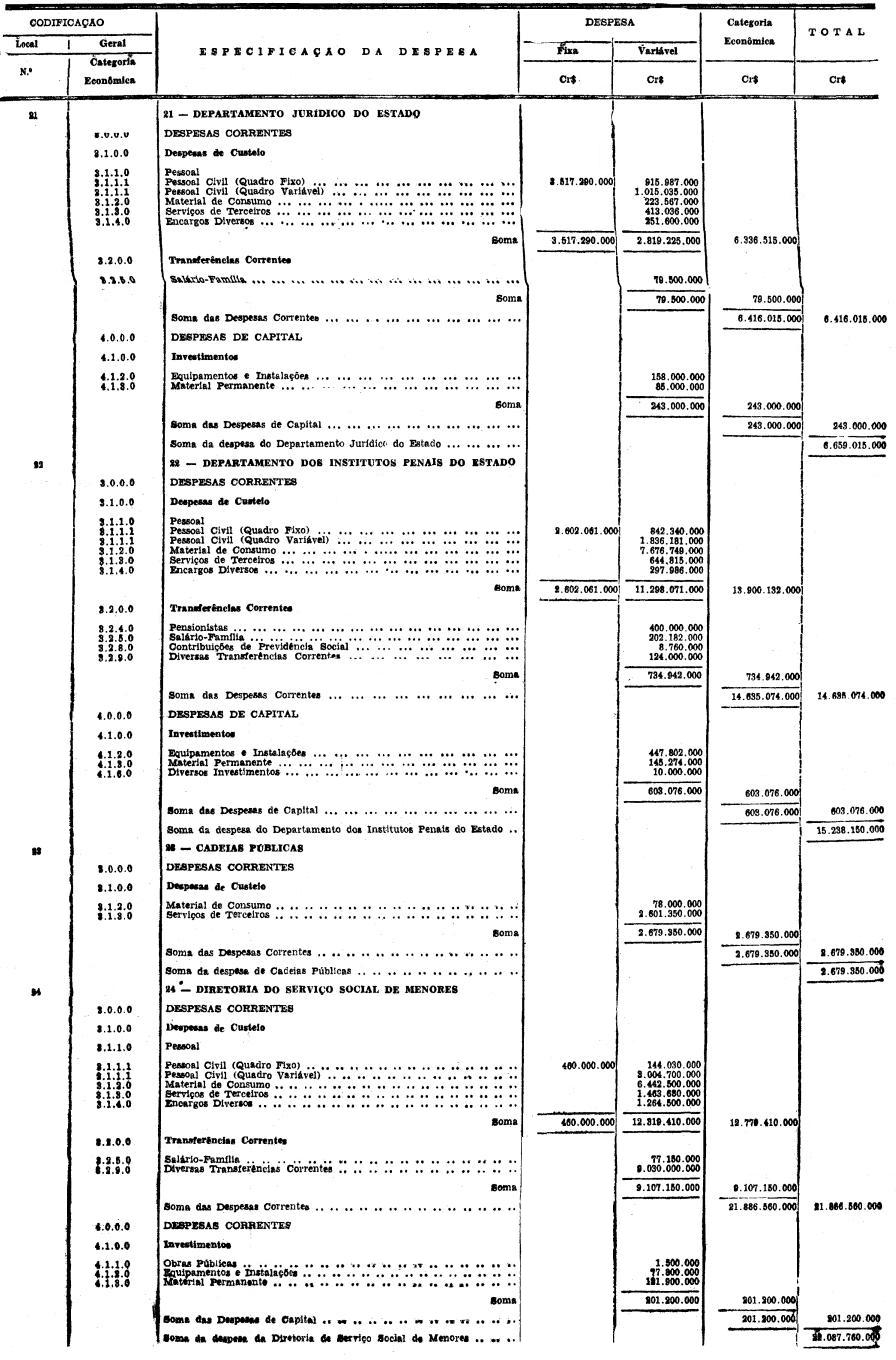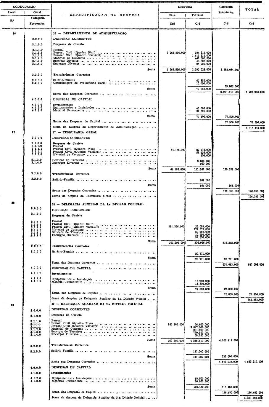 desta lei orça a Receita e fixa a Despesa em Cr$