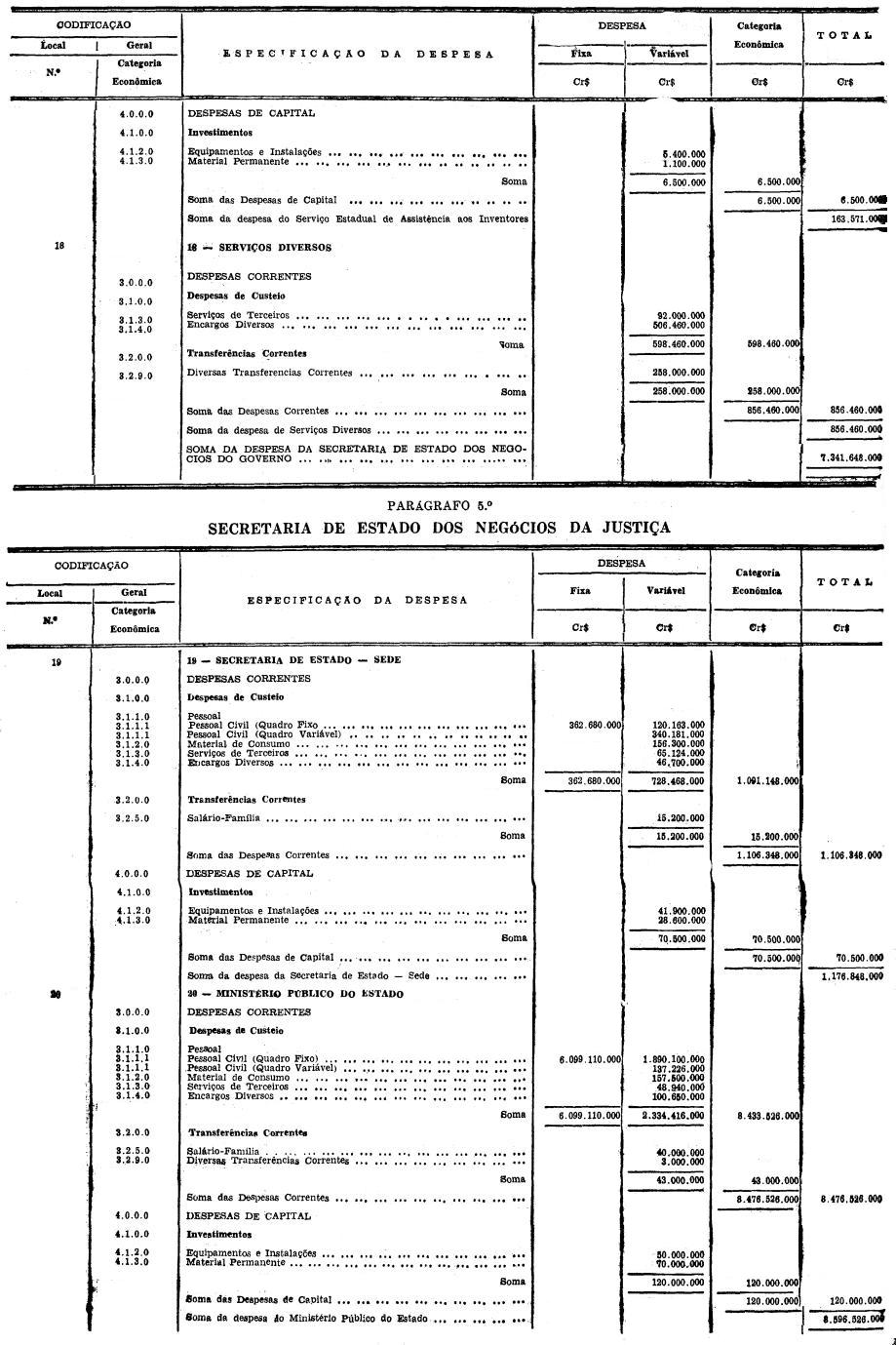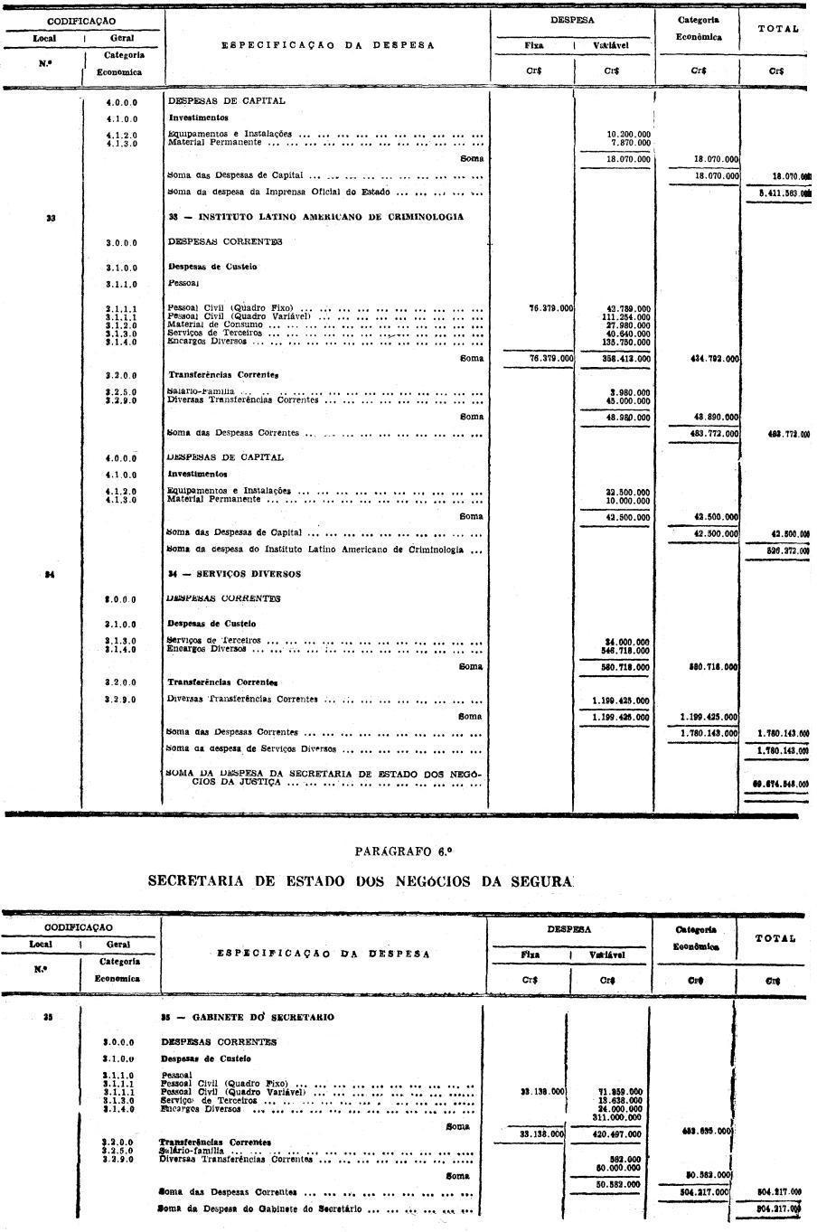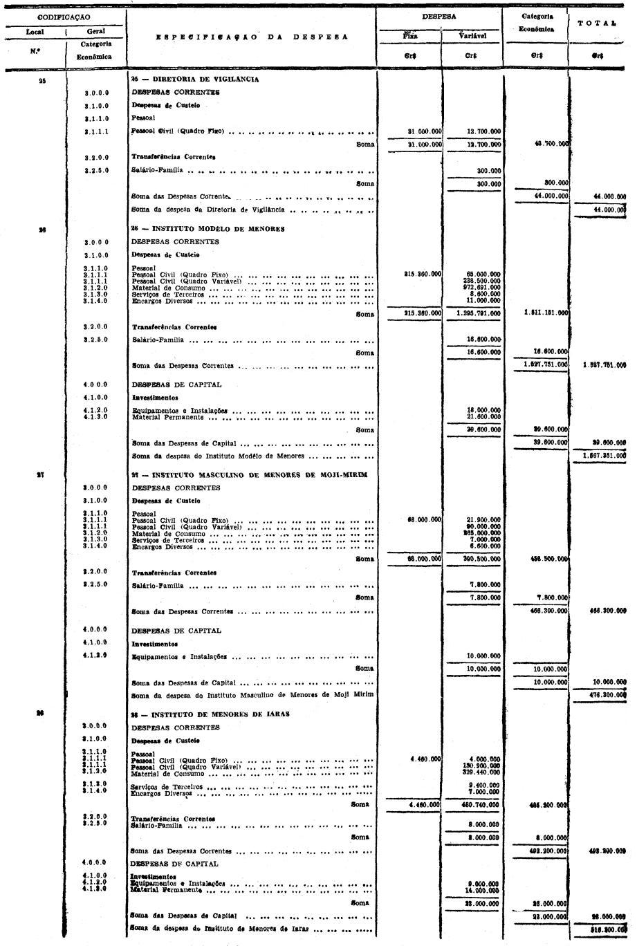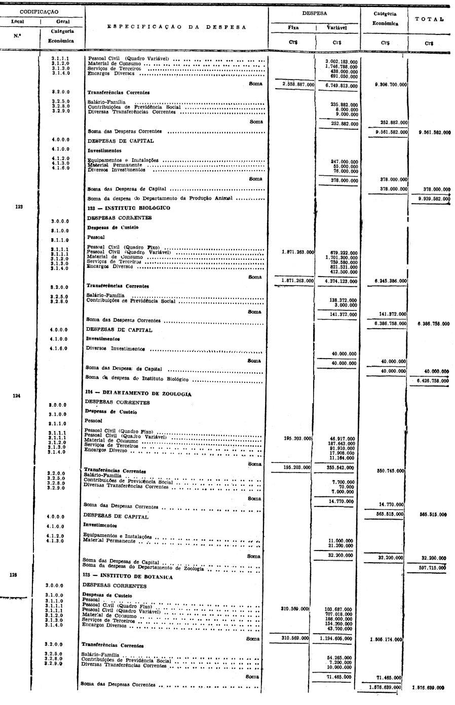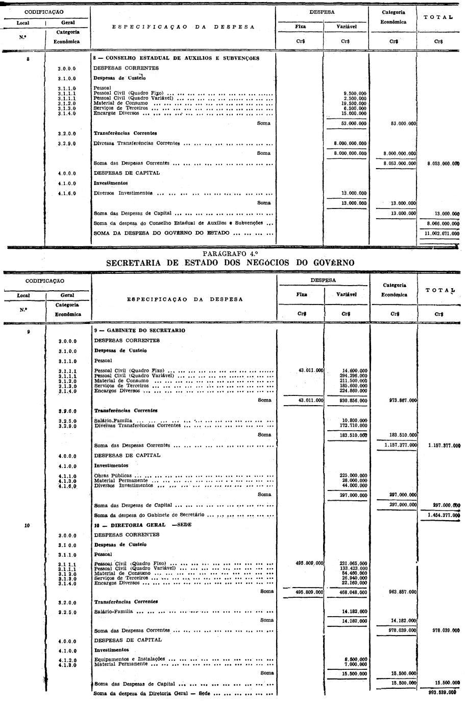 desta lei orça a Receita e fixa a Despesa em Cr$