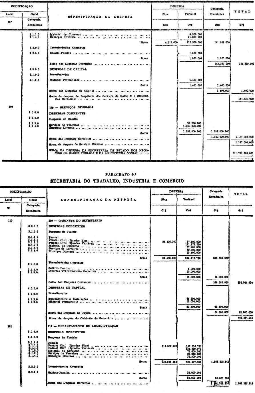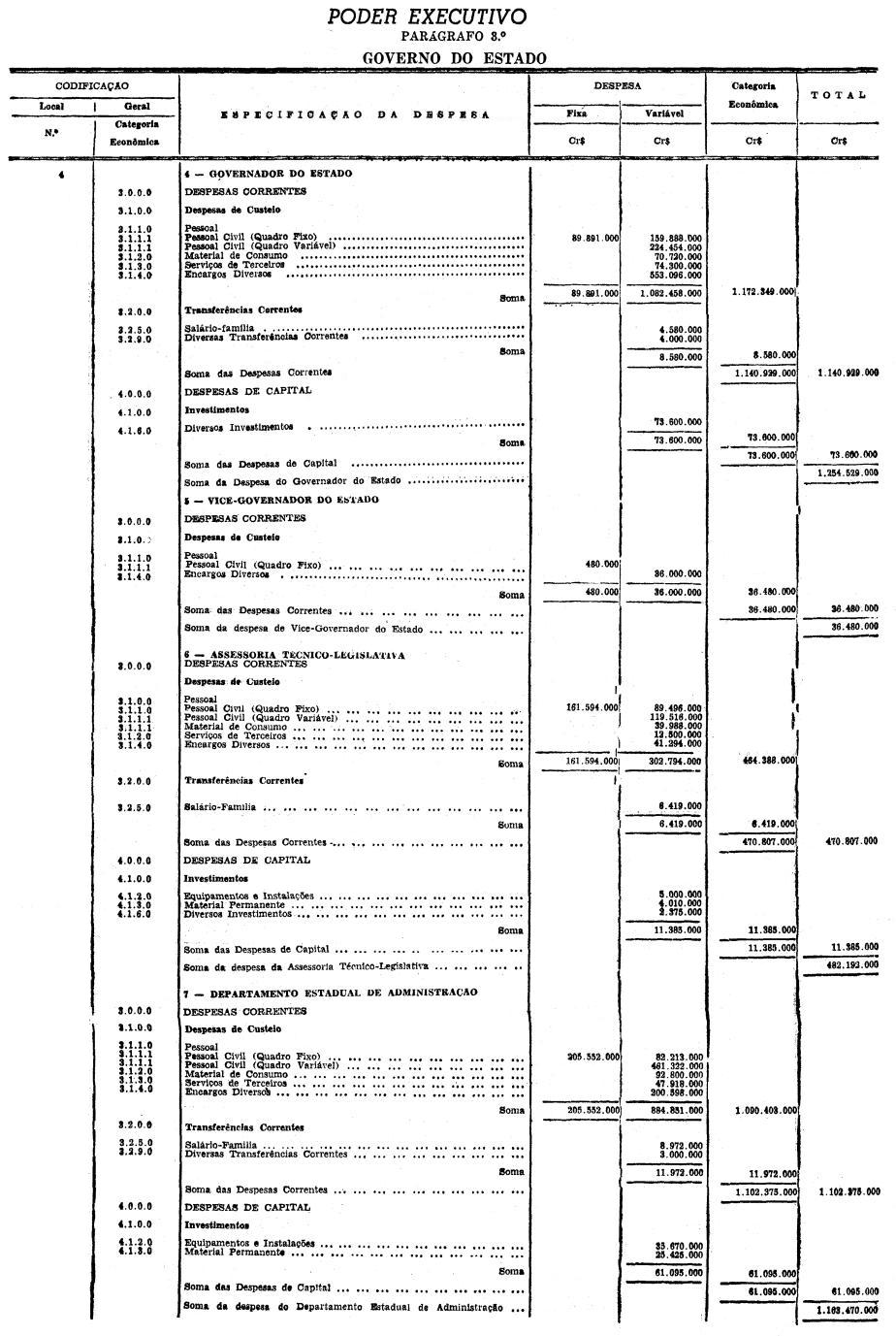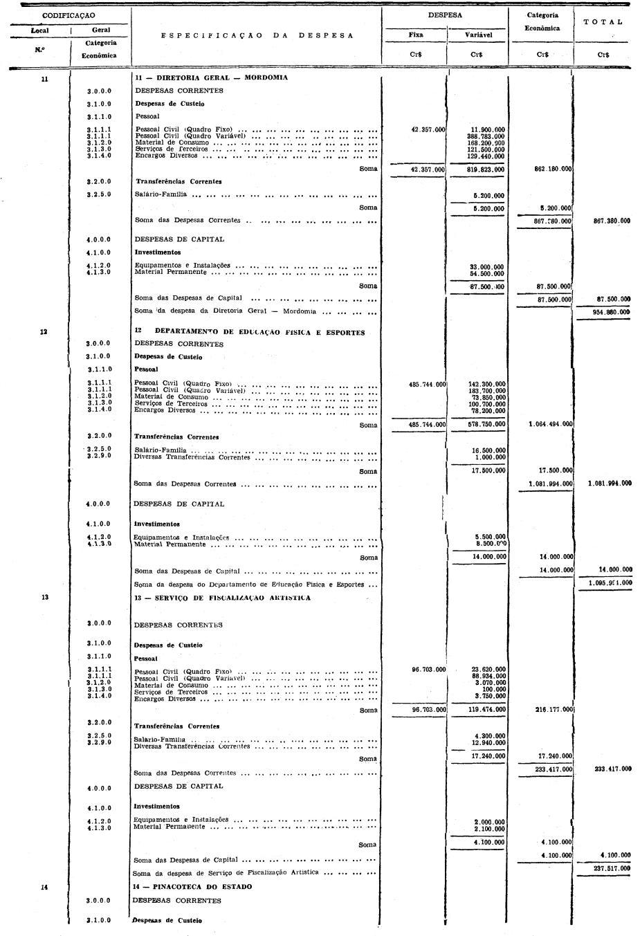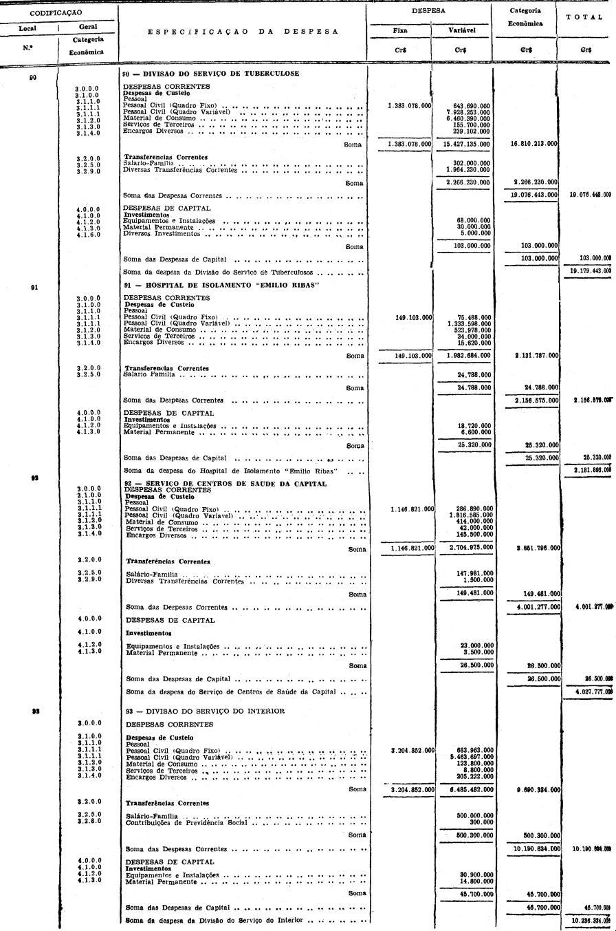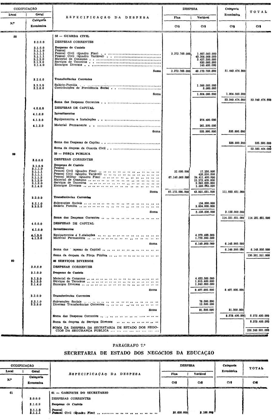 desta lei orça a Receita e fixa a Despesa em Cr$