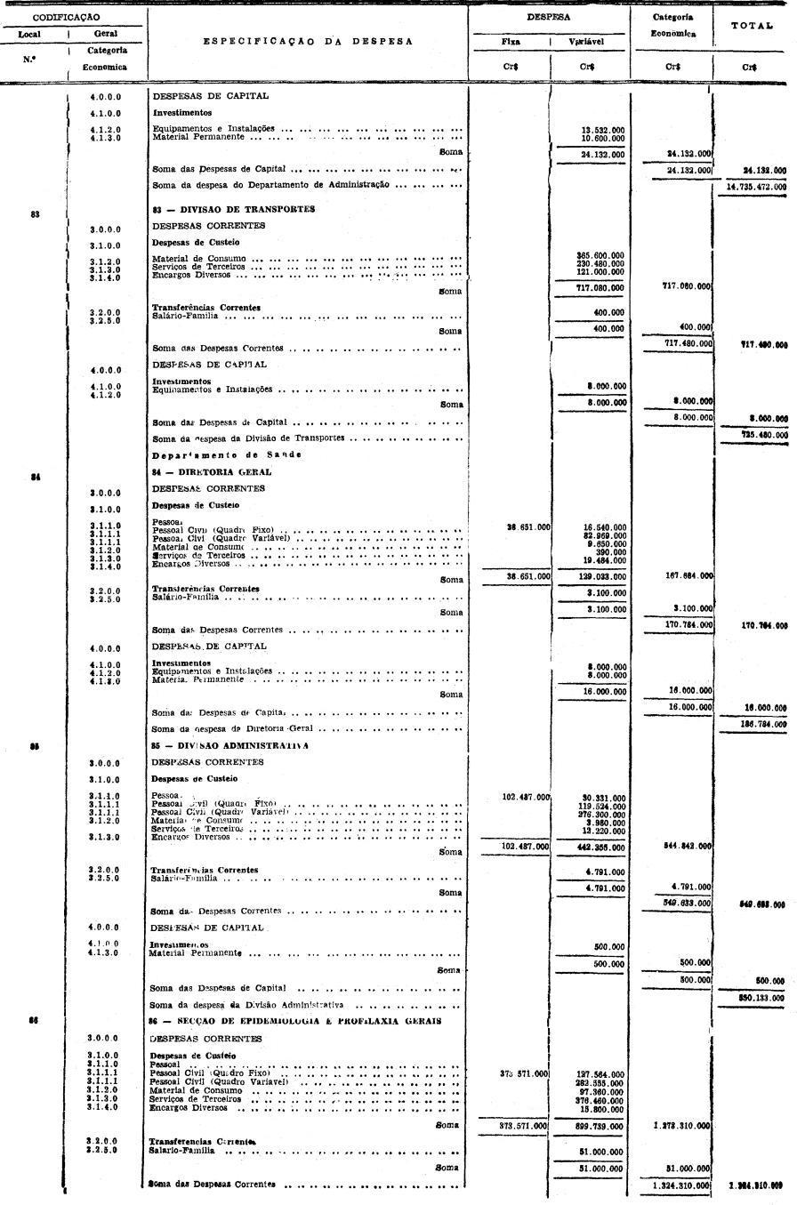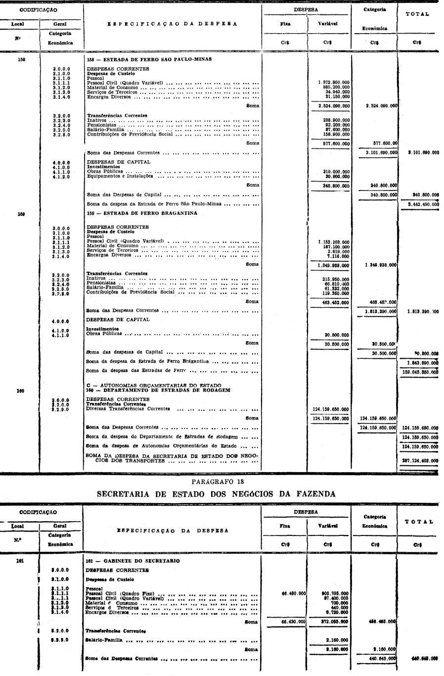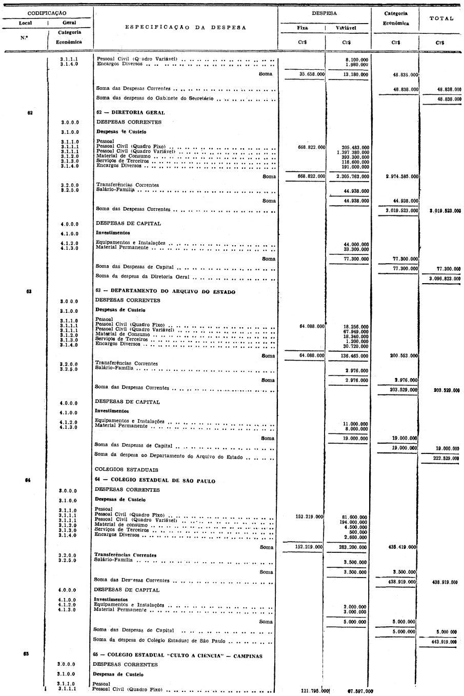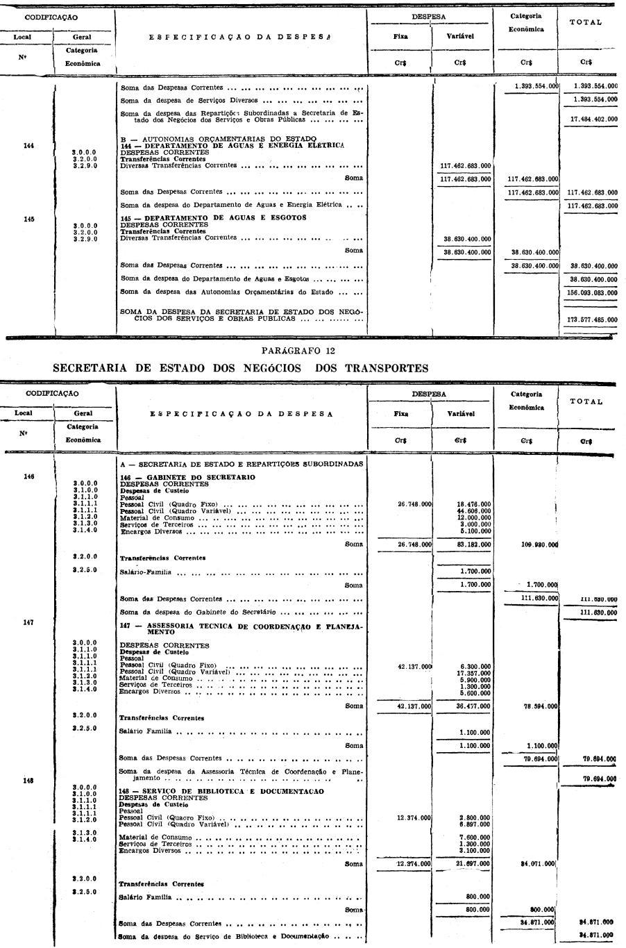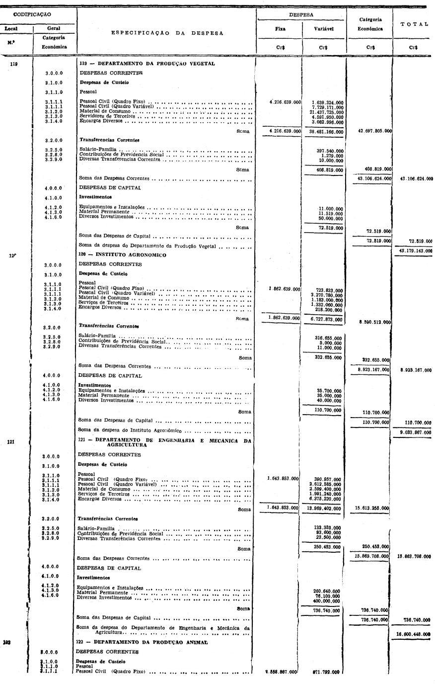 desta lei orça a Receita e fixa a Despesa em Cr$