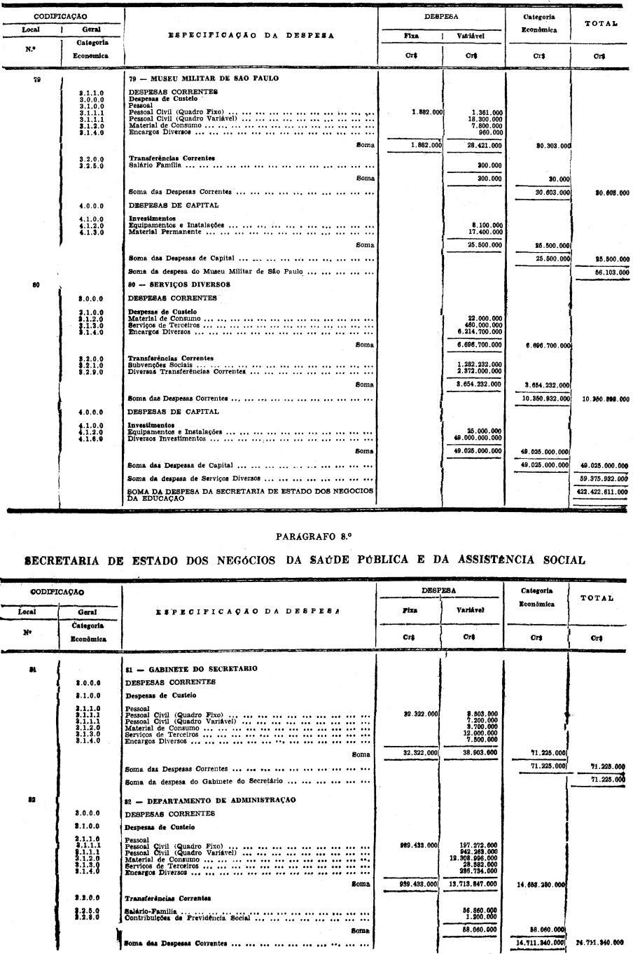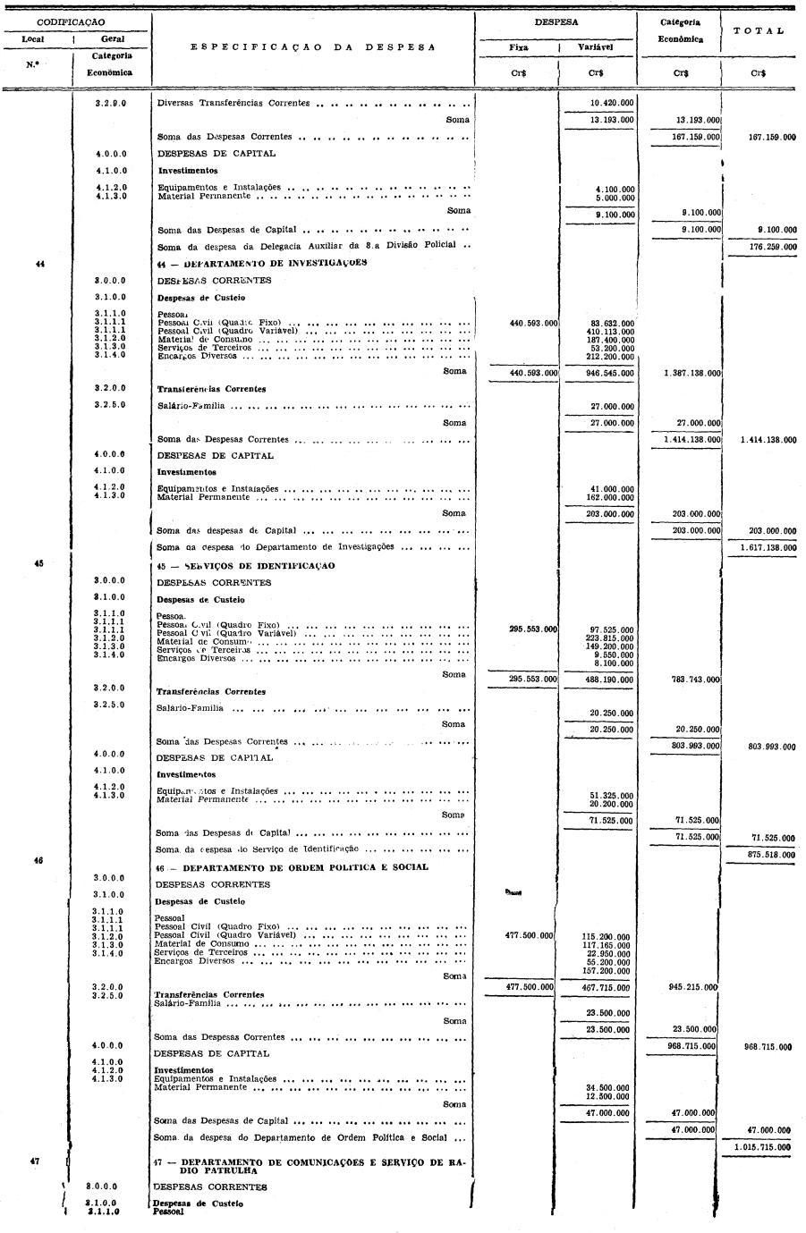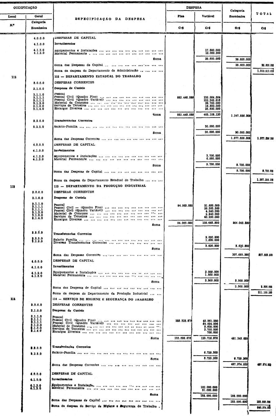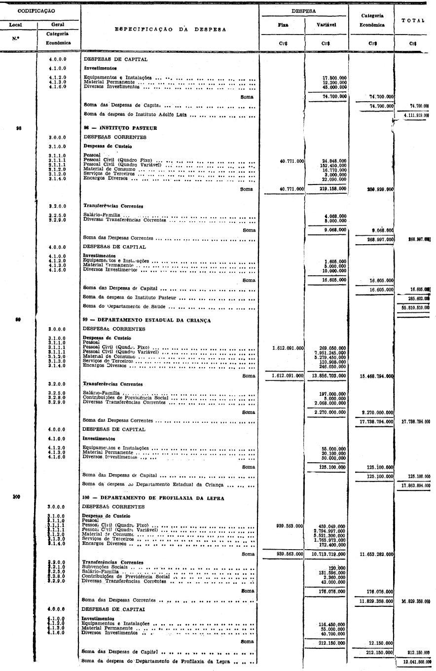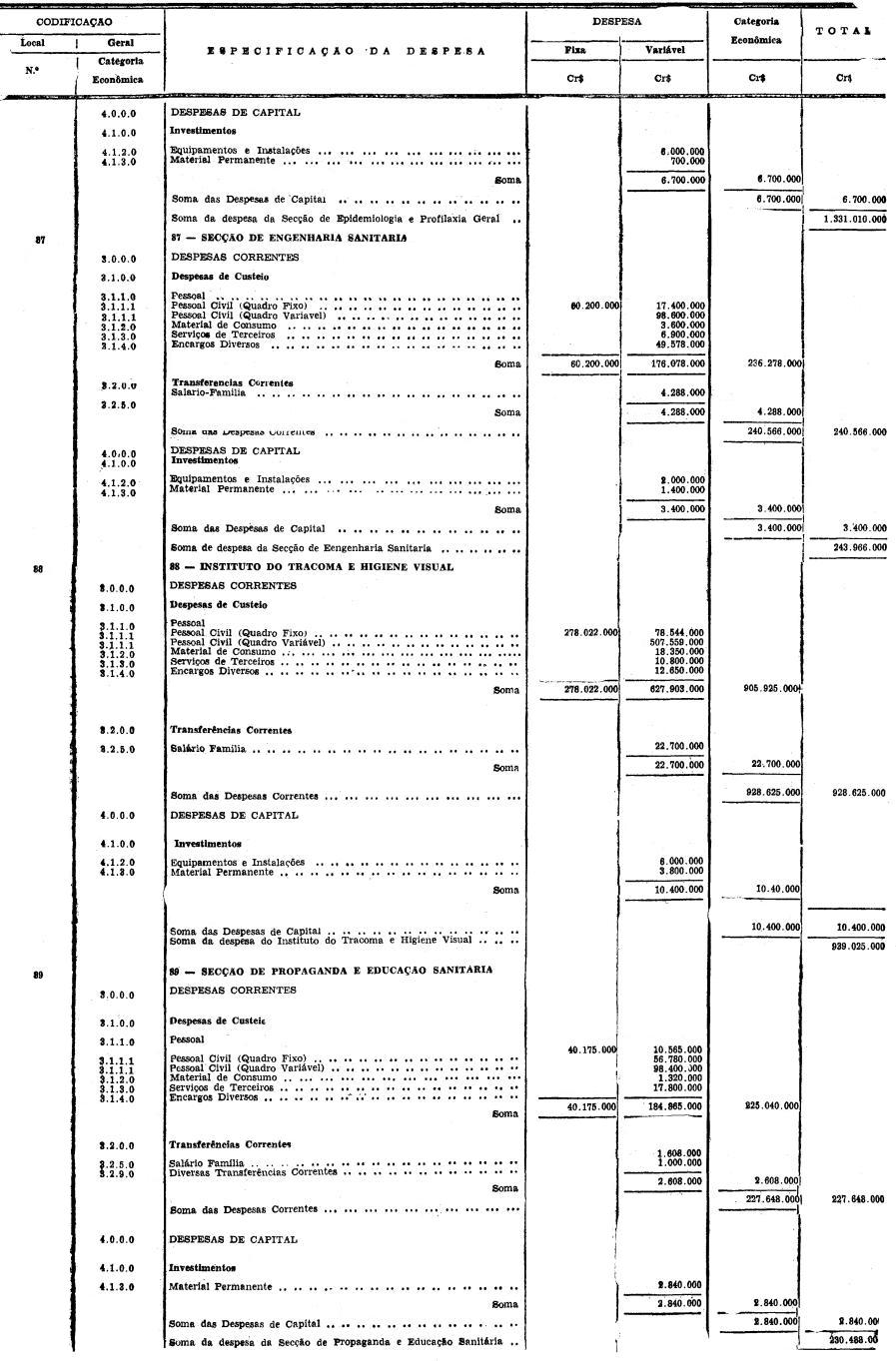 desta lei orça a Receita e fixa a Despesa em Cr$