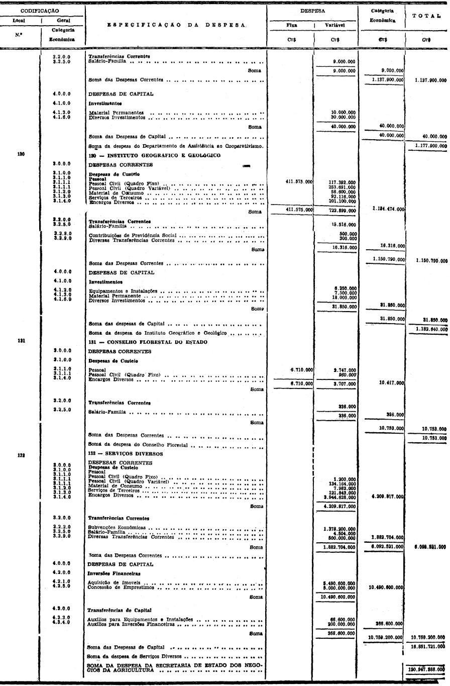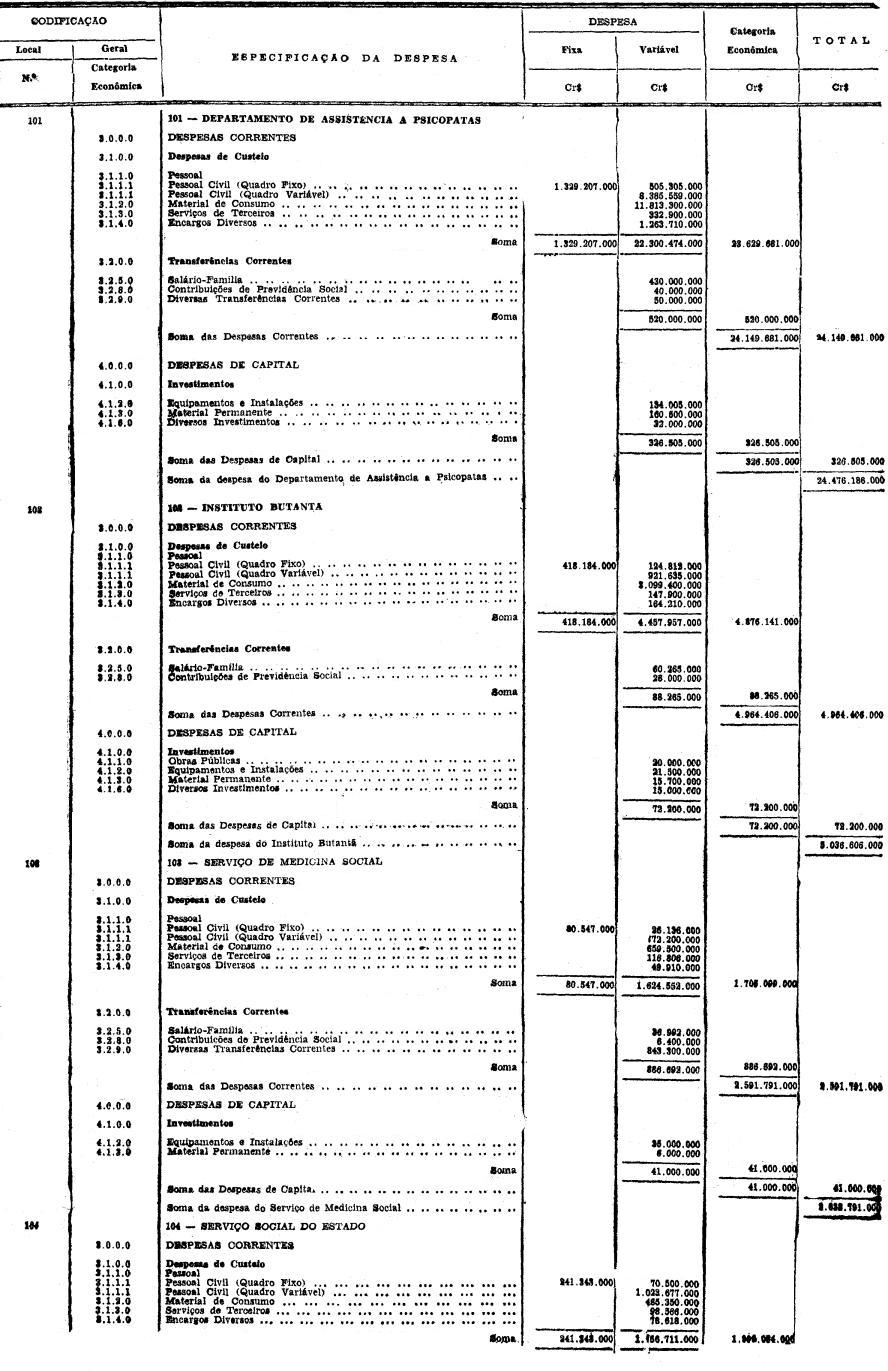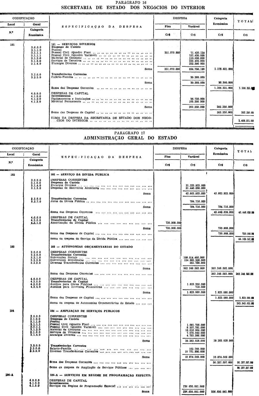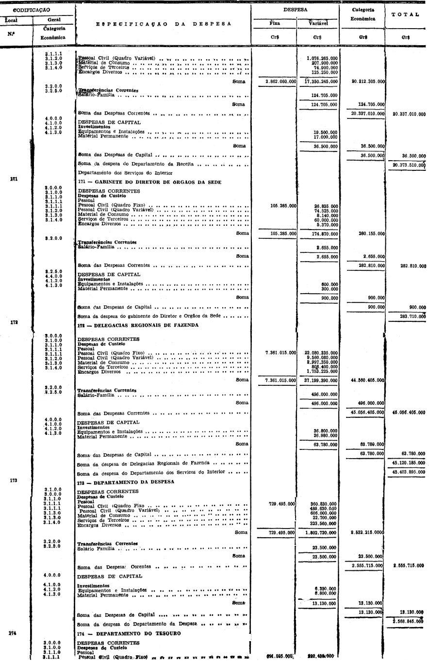exercício financeiro de 1967, discriminado nos Quadros integrantes