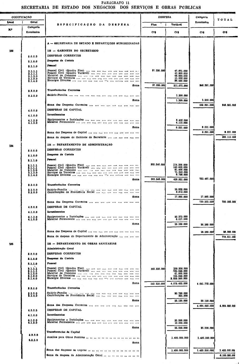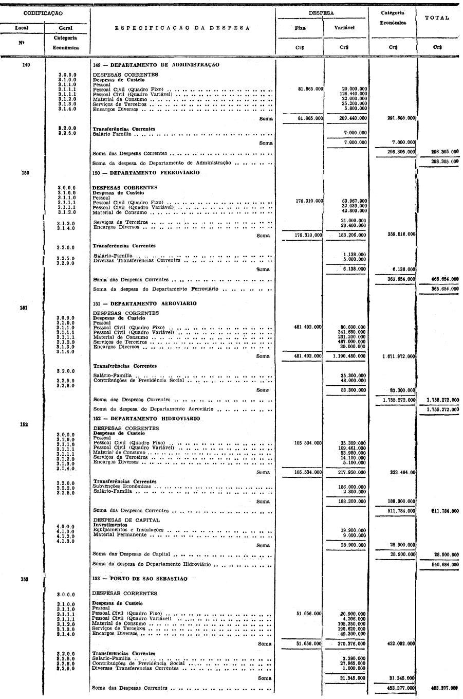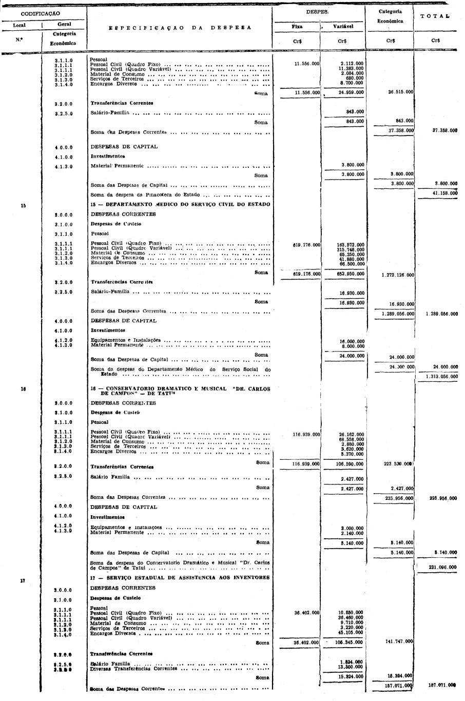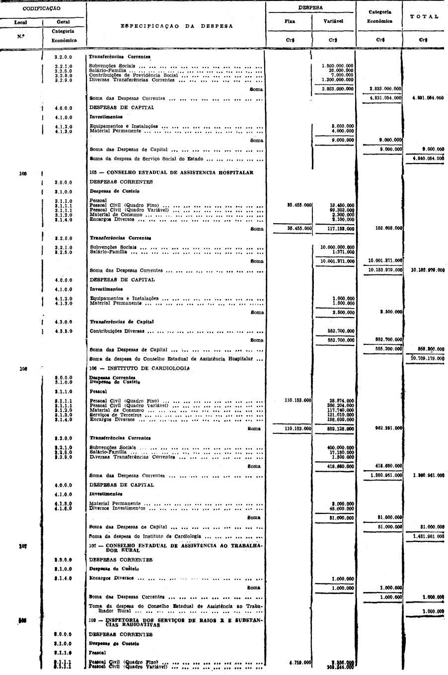 exercício financeiro de 1967, discriminado nos Quadros integrantes